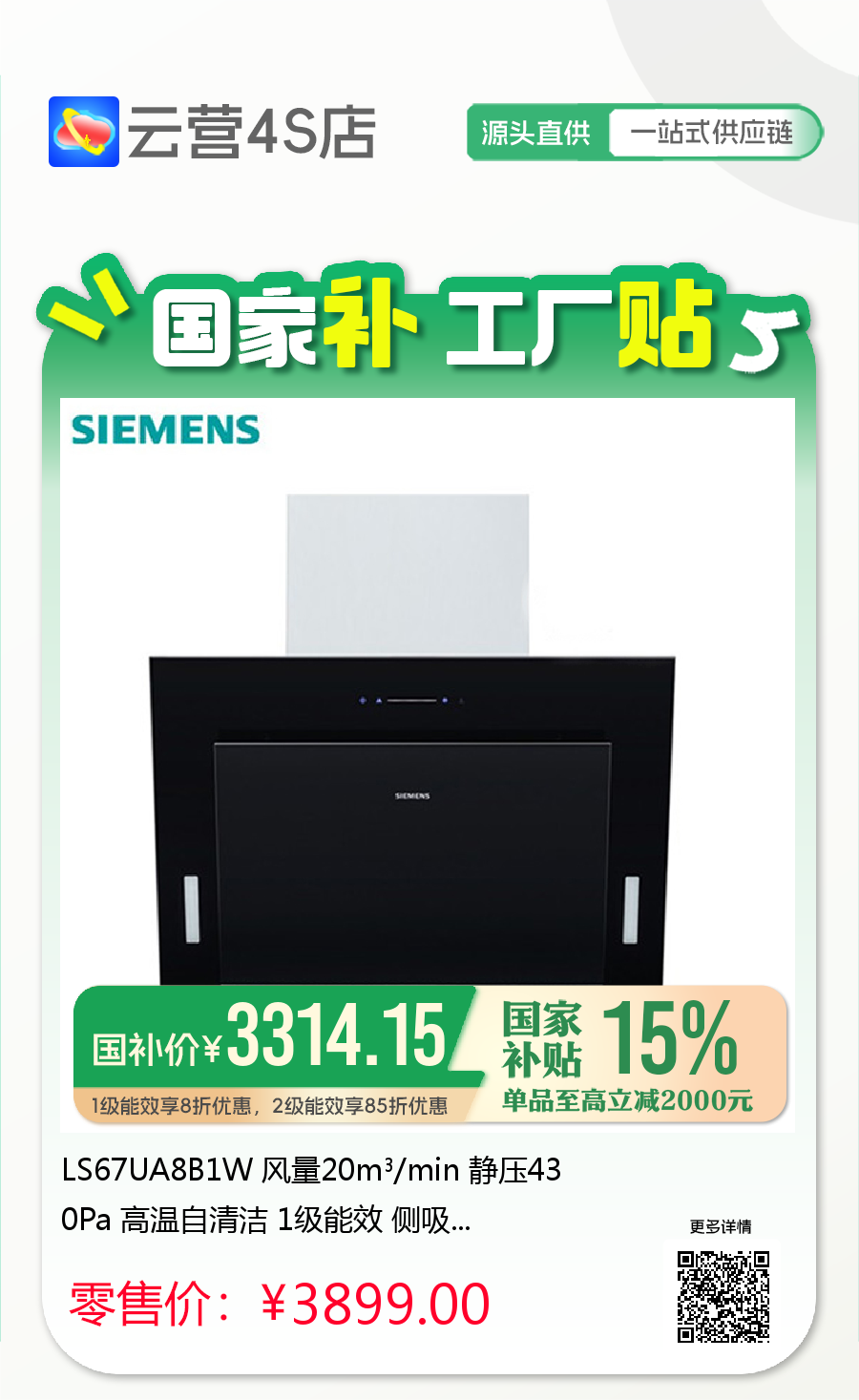 LS67UA8B1W 风量20m³/min 静压430Pa 高温自清洁 1级能效 侧吸