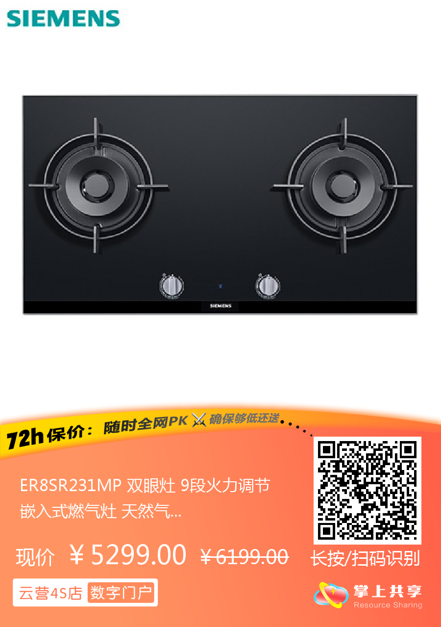 ER8SR231MP 双眼灶 9段火力调节 嵌入式燃气灶 天然气