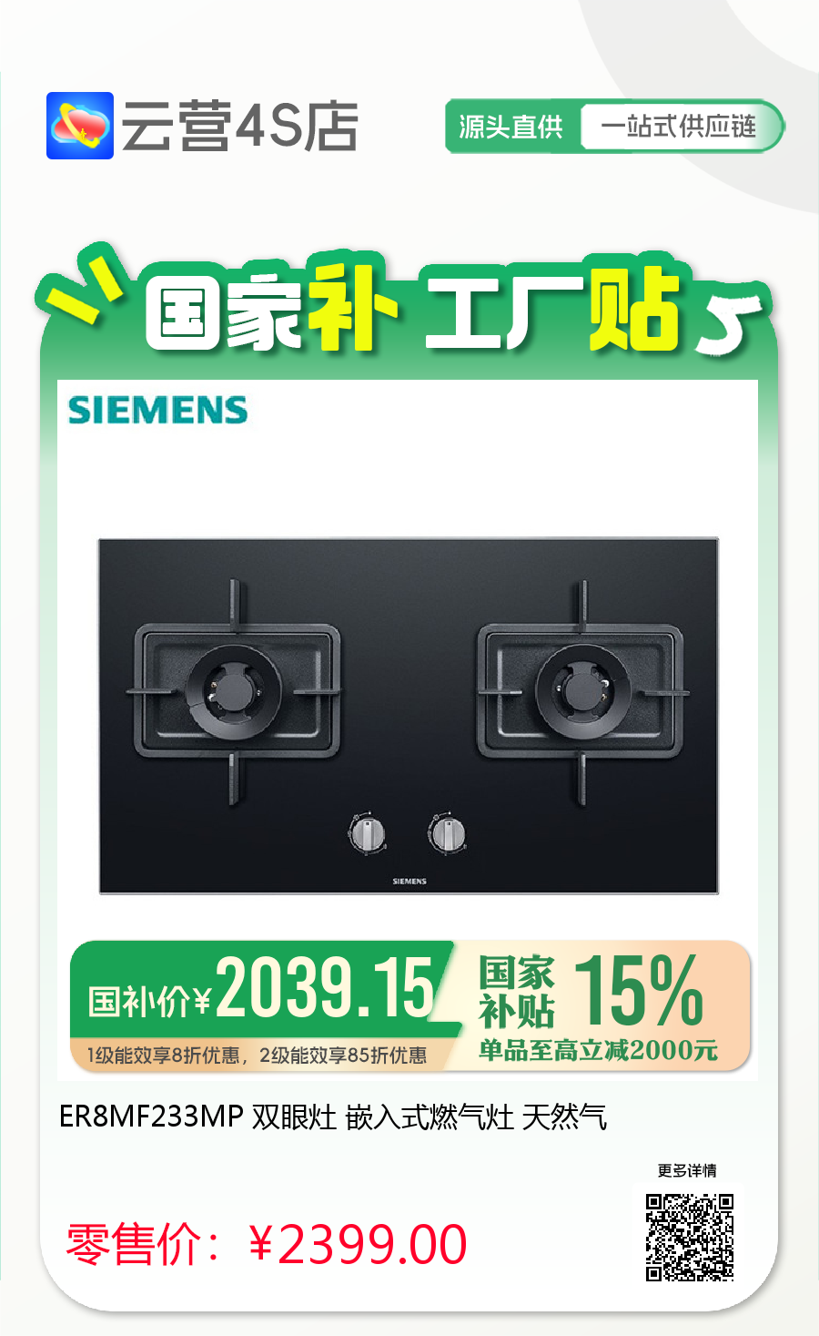 ER8MF233MP 双眼灶 嵌入式燃气灶 天然气