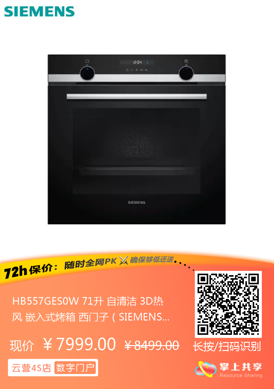 HB557GES0W 71升 自清洁 3D热风 嵌入式烤箱 西门子(SIEMENS)