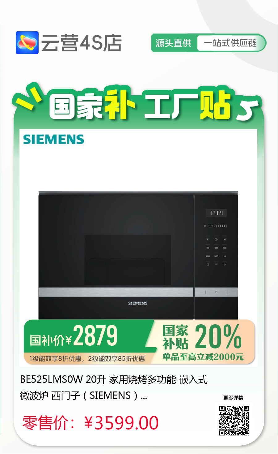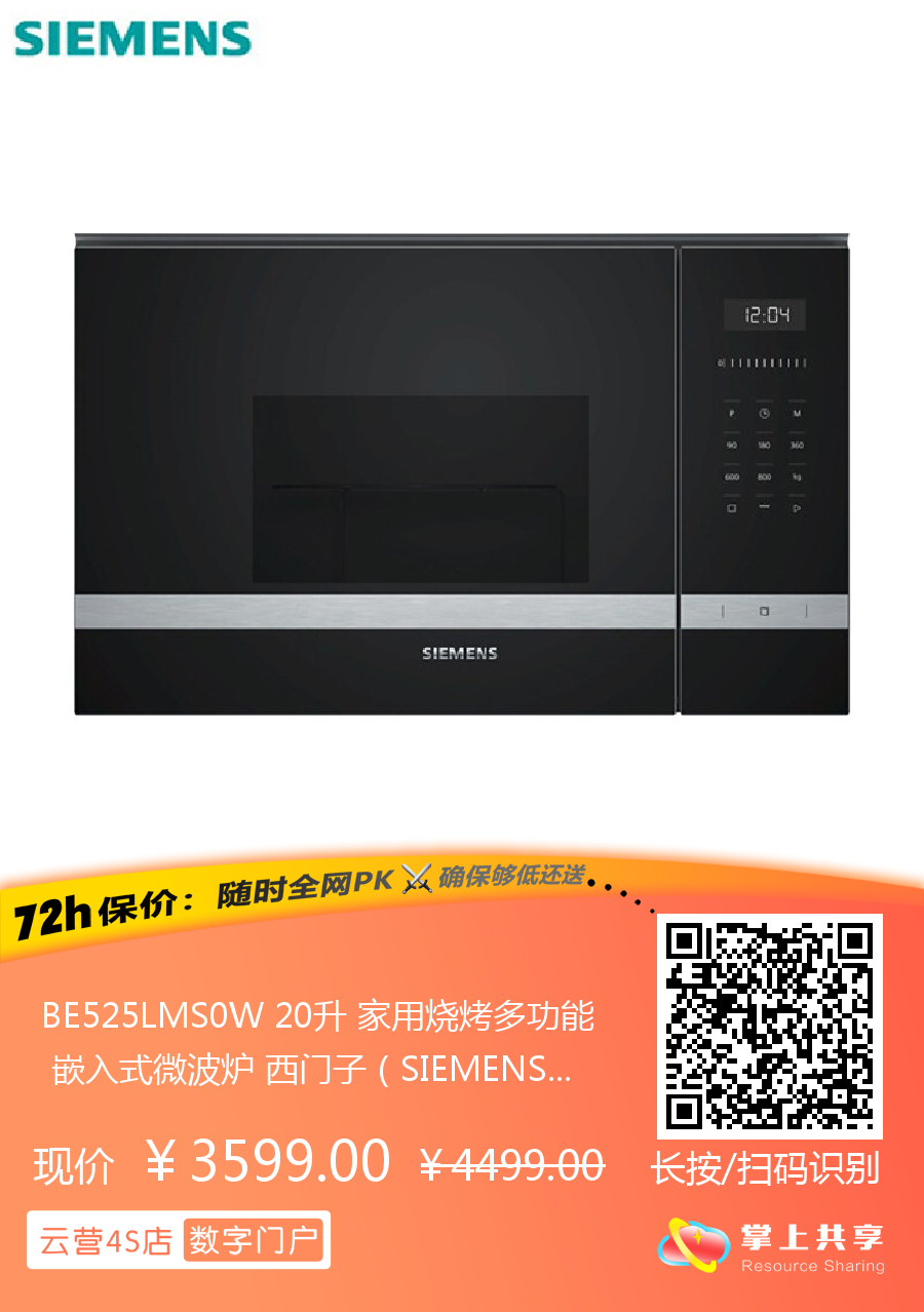 BE525LMS0W 20升 家用烧烤多功能 嵌入式微波炉 西门子(SIEMENS)