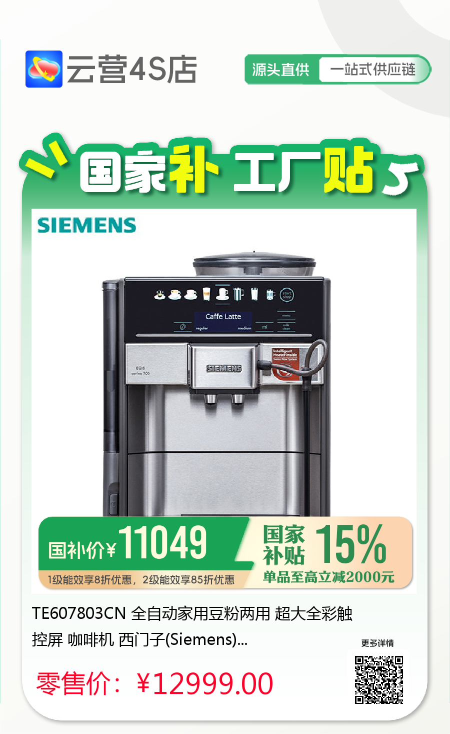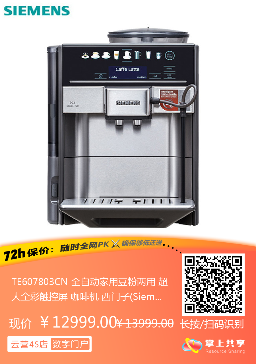 TE607803CN 全自动家用豆粉两用 超大全彩触控屏 咖啡机 西门子(Siemens)