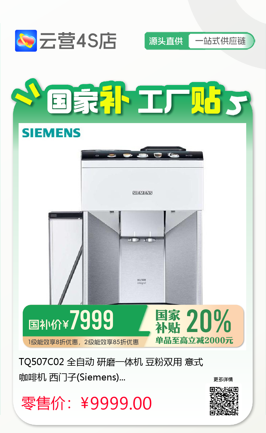 TQ507C02 全自动 研磨一体机 豆粉双用 意式咖啡机 西门子(Siemens)