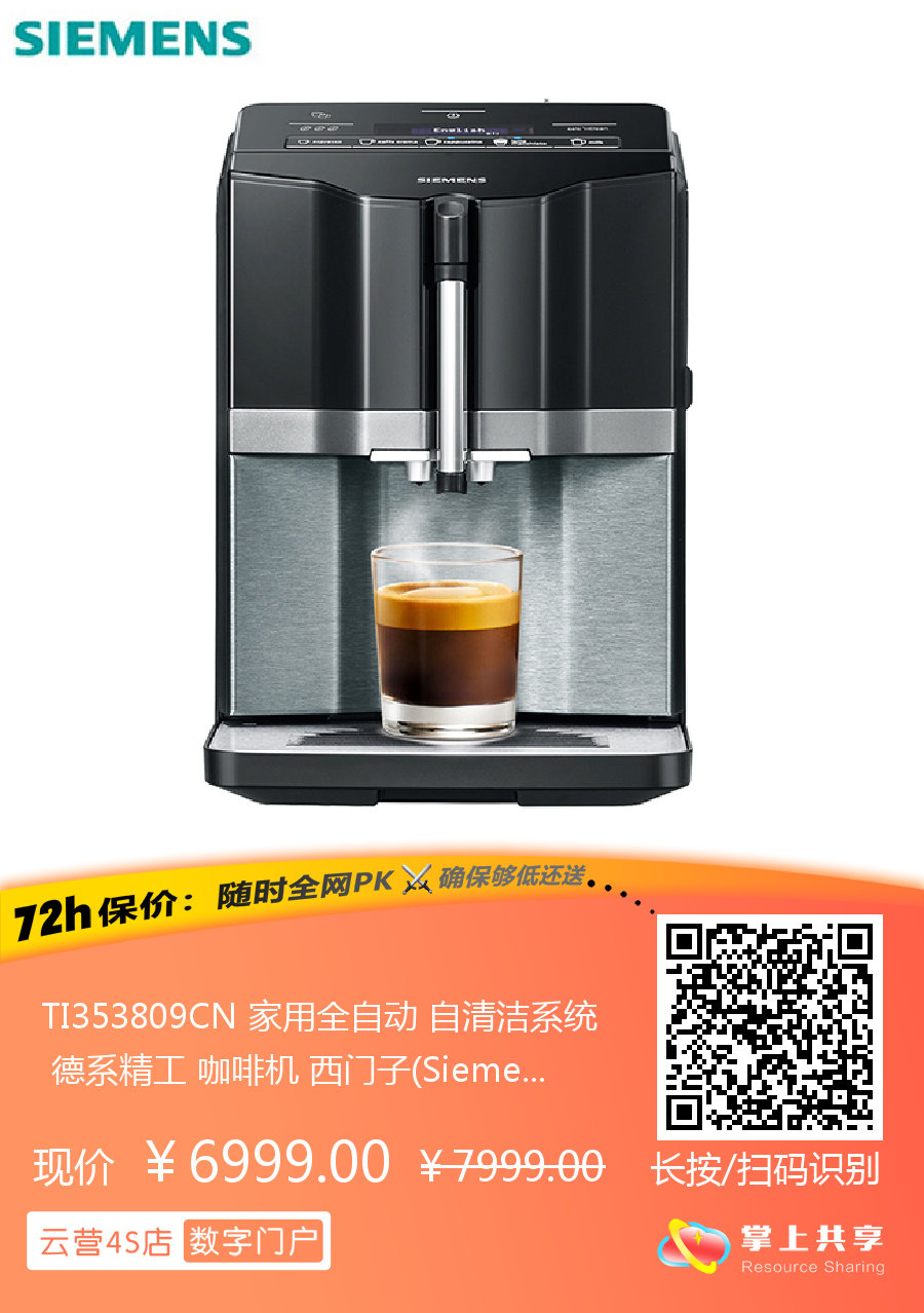 TI353809CN 家用全自动 自清洁系统 德系精工 咖啡机 西门子(Siemens)