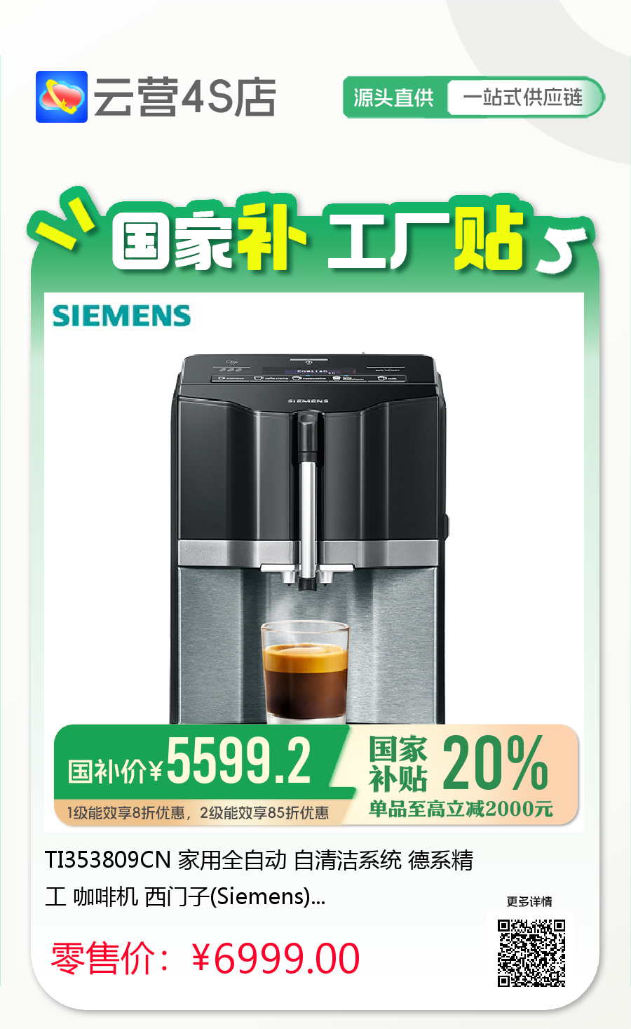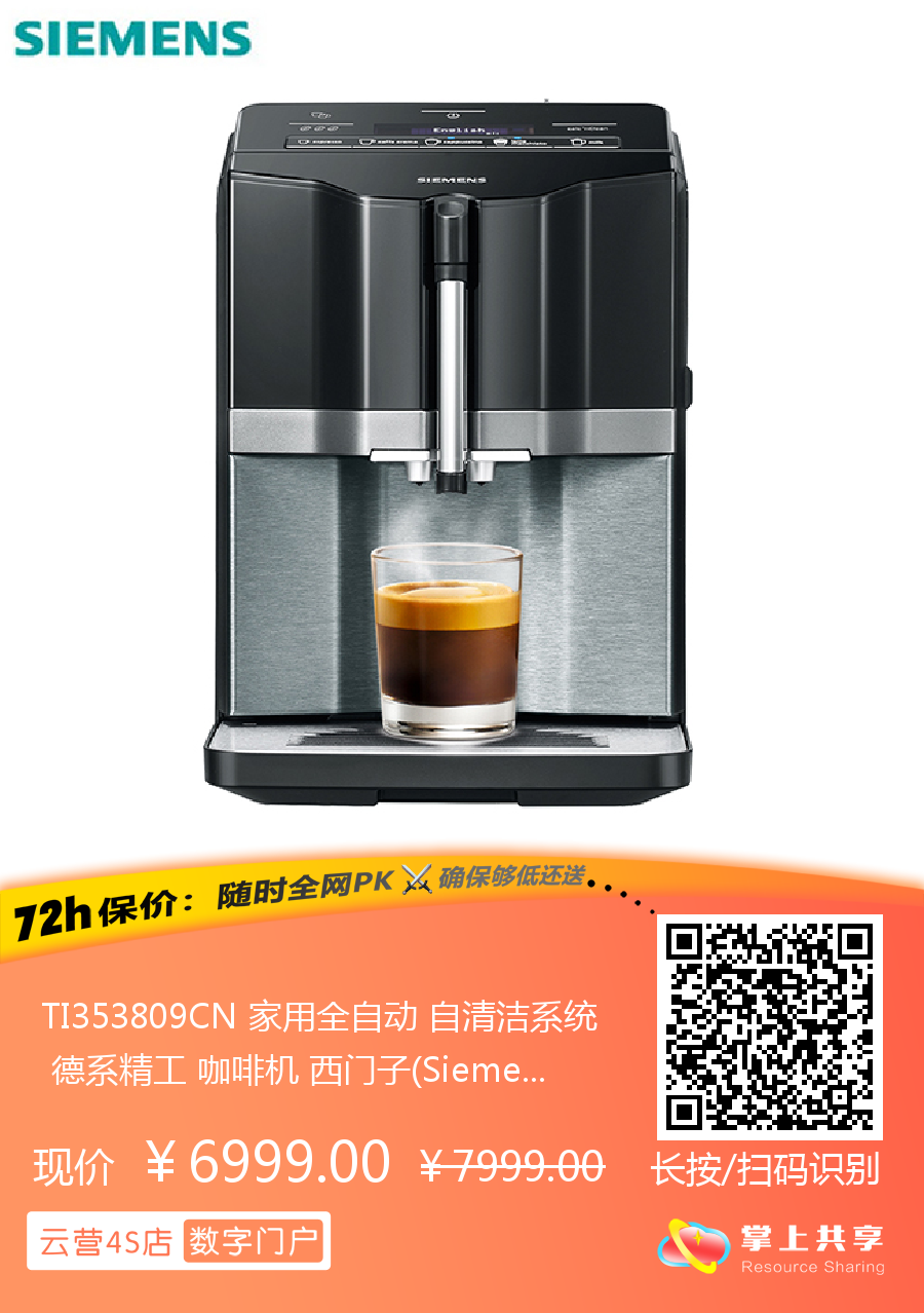 TI353809CN 家用全自动 自清洁系统 德系精工 咖啡机 西门子(Siemens)
