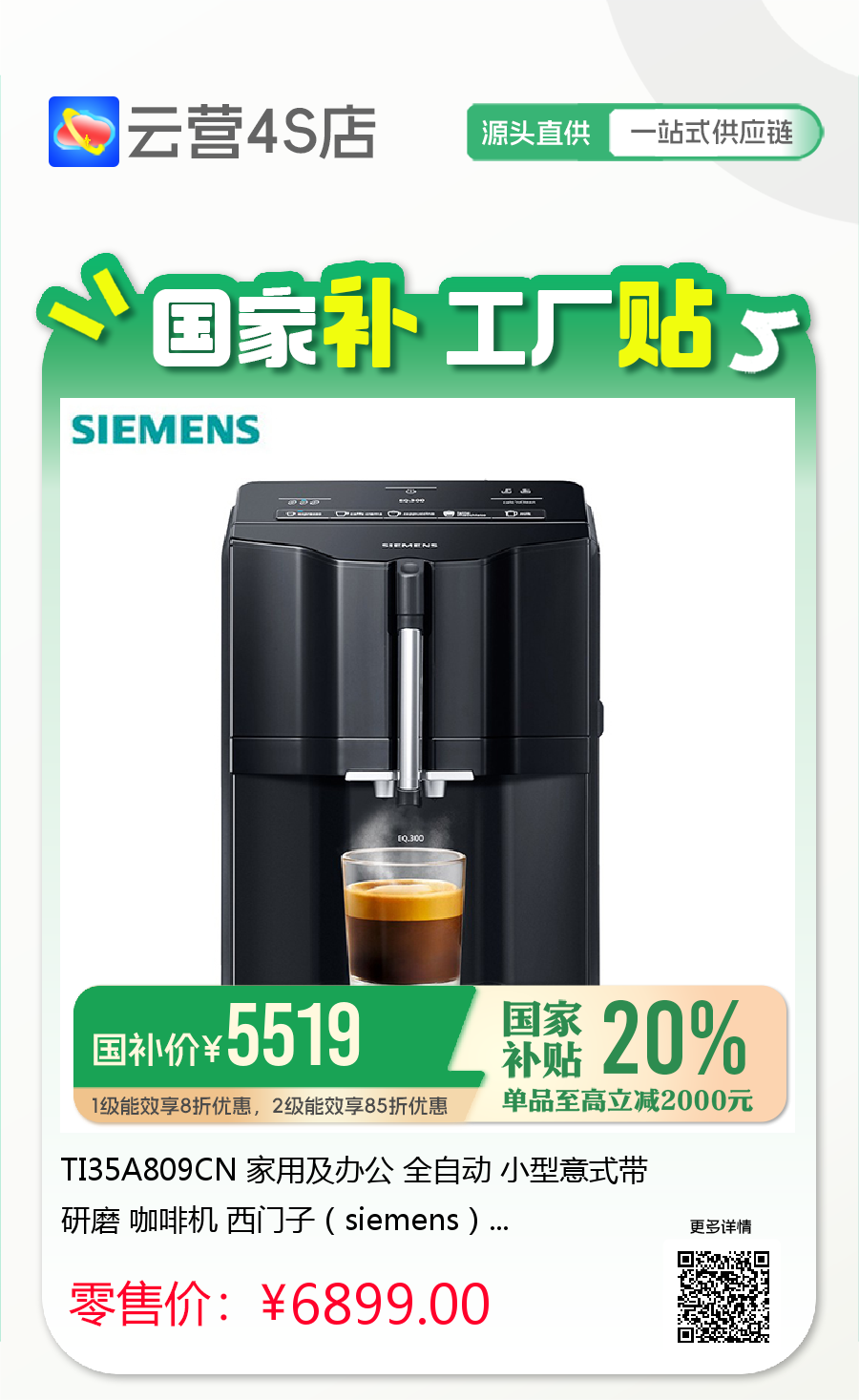 TI35A809CN 家用及办公 全自动 小型意式带研磨 咖啡机 西门子(siemens)