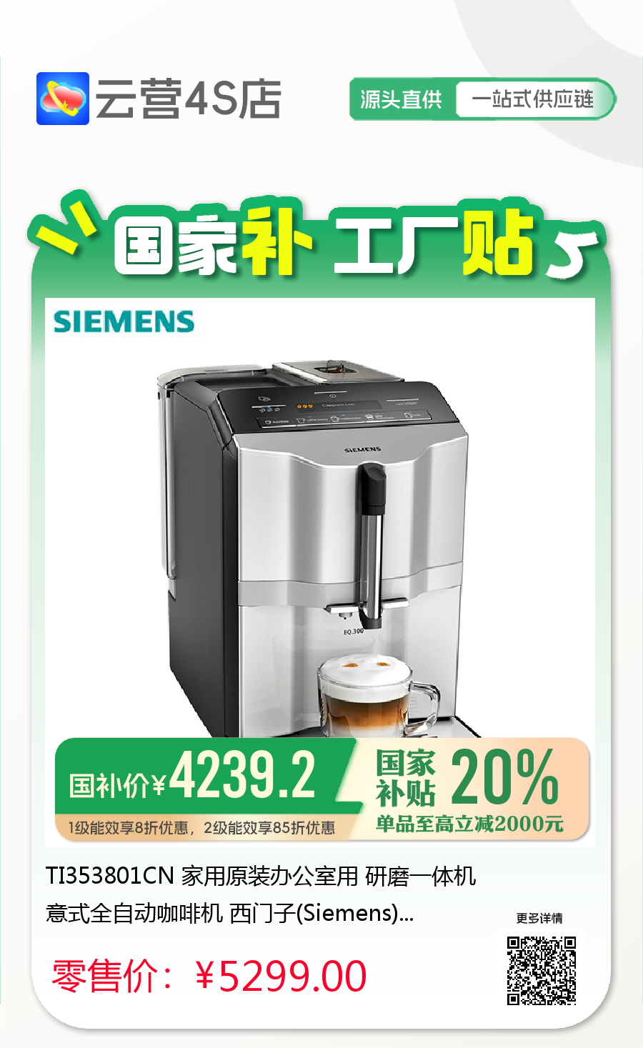 TI353801CN 家用原装办公室用 研磨一体机 意式全自动咖啡机 西门子(Siemens)