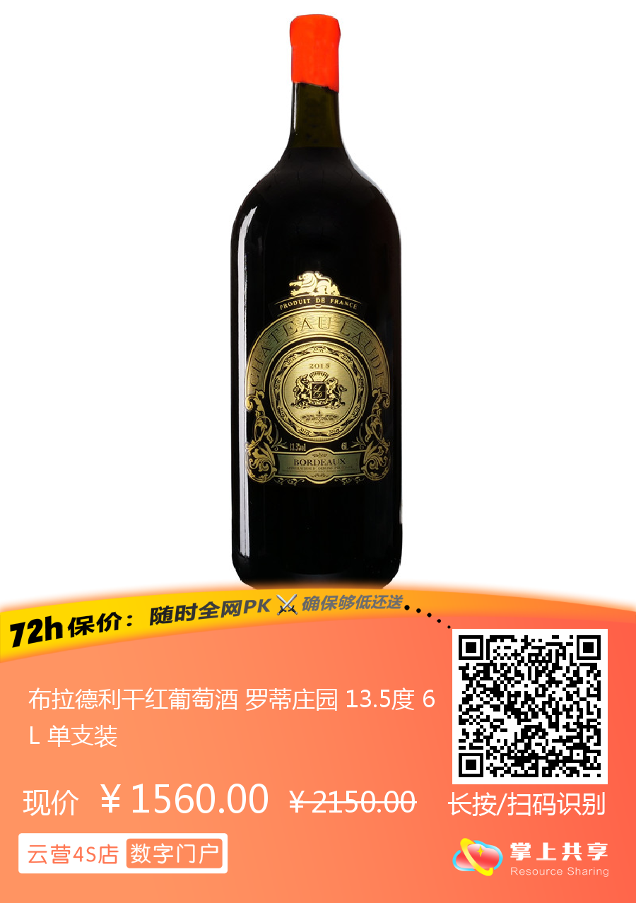 布拉德利干红葡萄酒 罗蒂庄园 13.5度 6L 单支装