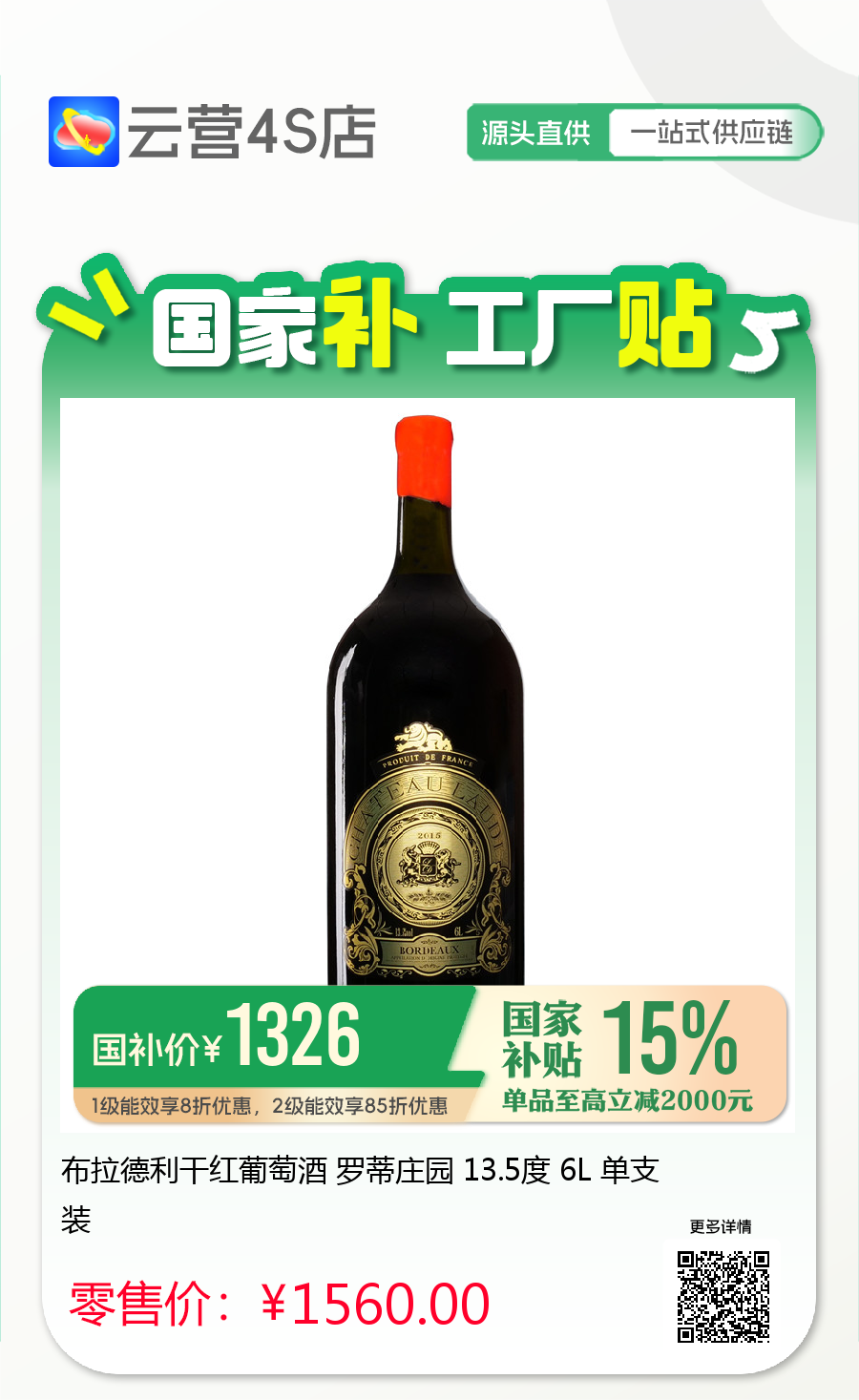 布拉德利干红葡萄酒 罗蒂庄园 13.5度 6L 单支装
