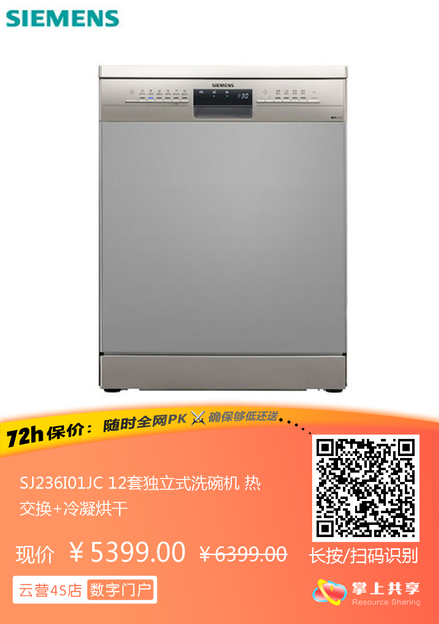 SJ236I01JC 12套独立式洗碗机 热交换+冷凝烘干