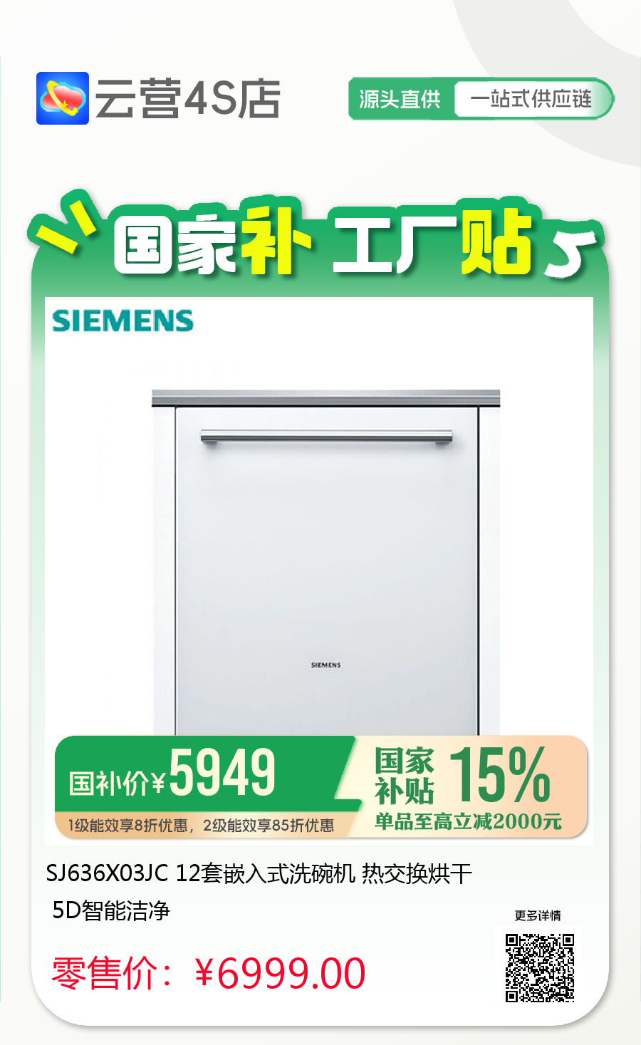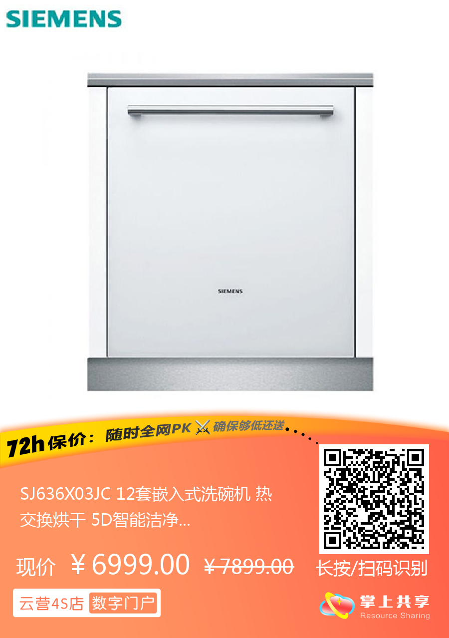 SJ636X03JC 12套嵌入式洗碗机 热交换烘干 5D智能洁净
