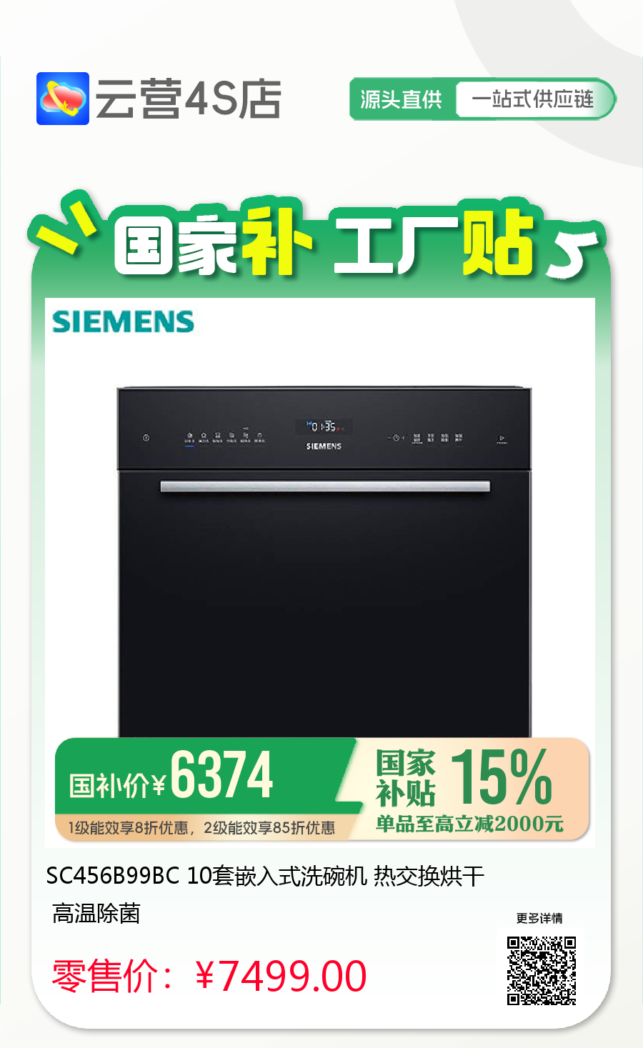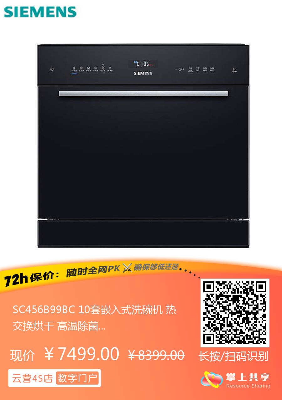 SC456B99BC 10套嵌入式洗碗机 热交换烘干 高温除菌