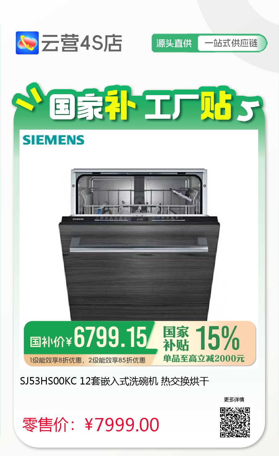 SJ53HS00KC 12套嵌入式洗碗机 热交换烘干