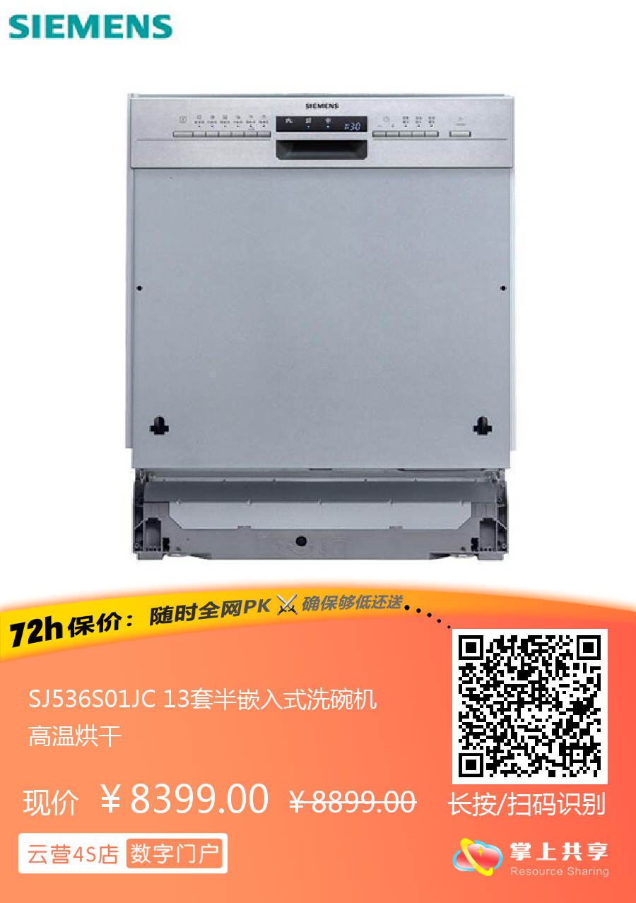 SJ536S01JC 13套半嵌入式洗碗机 高温烘干