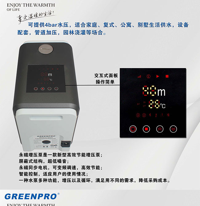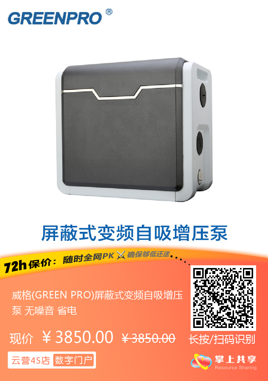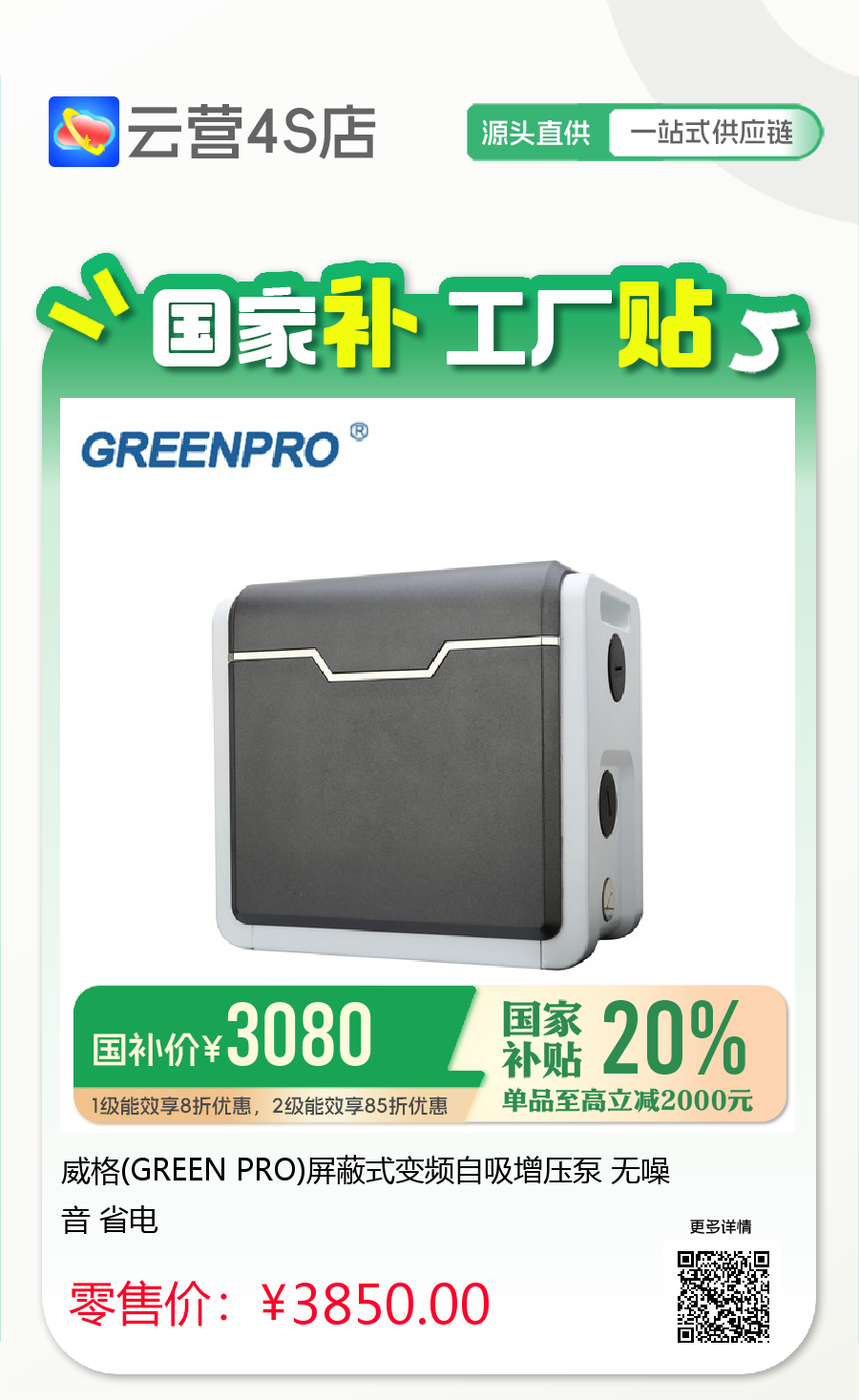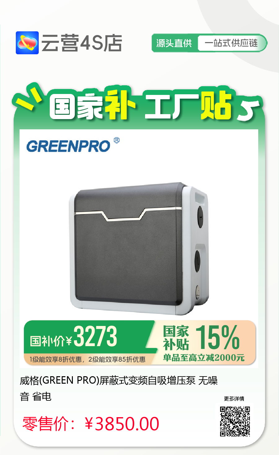 威格(GREEN PRO)屏蔽式变频自吸增压泵 无噪音 省电