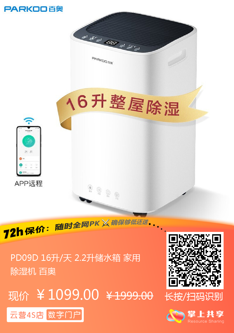 PD09D 16升/天 2.2升储水箱 家用除湿机 百奥