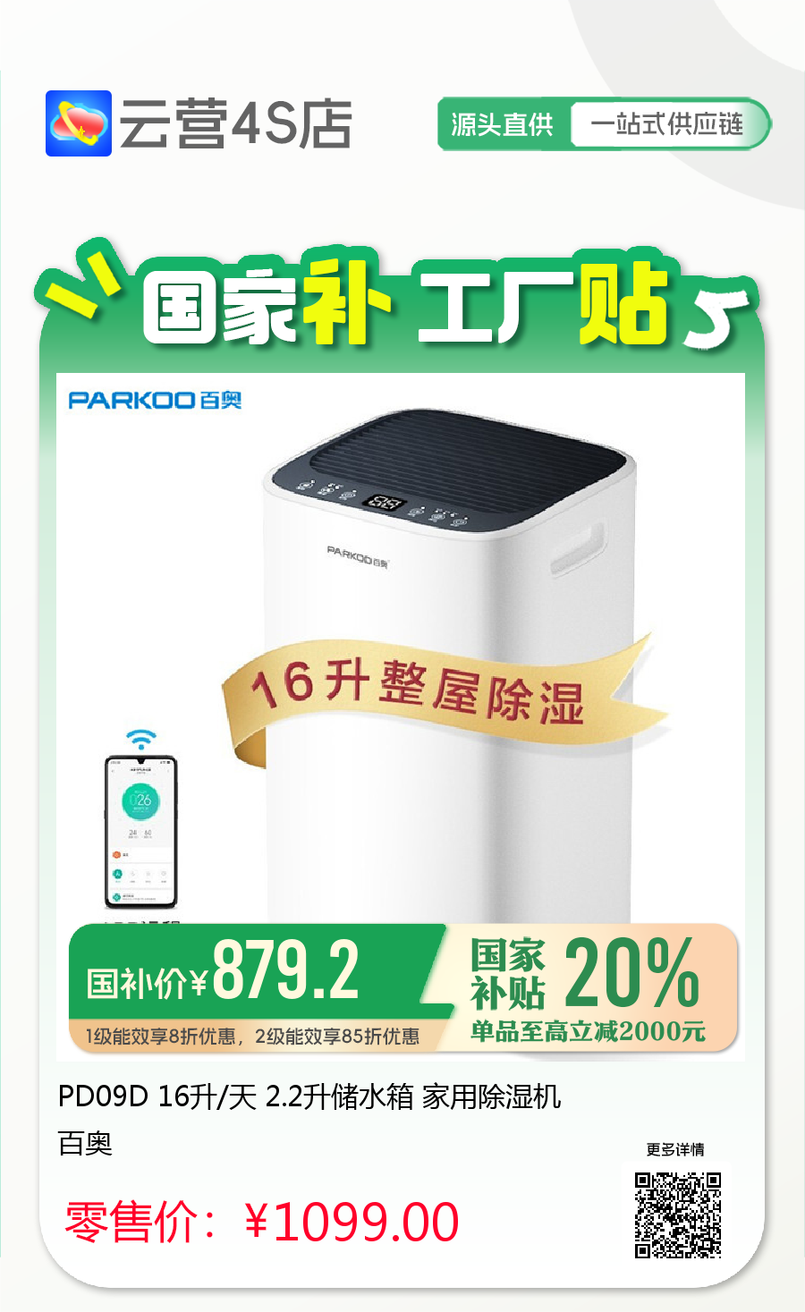 PD09D 16升/天 2.2升储水箱 家用除湿机 百奥