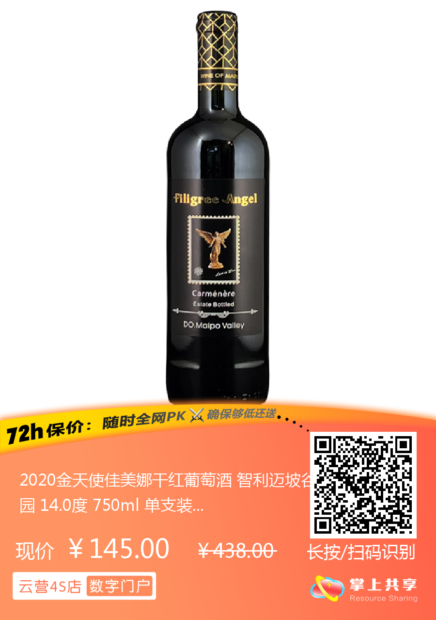2020金天使佳美娜干红葡萄酒 智利迈坡谷庄园 14.0度 750ml 单支装