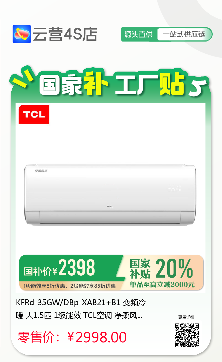 KFRd-35GW/DBp-XAB21+B1 变频冷暖 大1.5匹 1级能效 TCL空调 净柔风系列