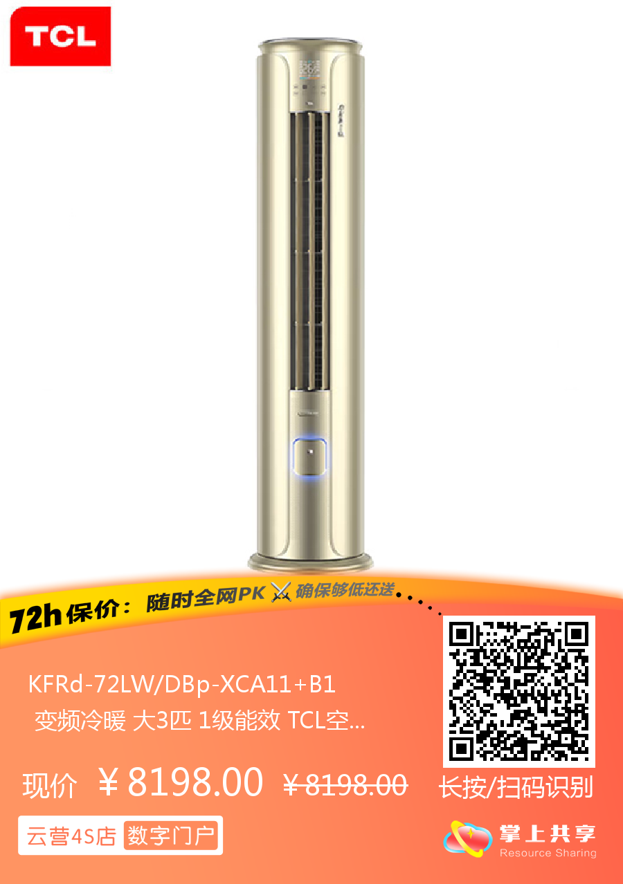 KFRd-72LW/DBp-XCA11+B1 变频冷暖 大3匹 1级能效 TCL空调 小蓝翼Ⅱ系列