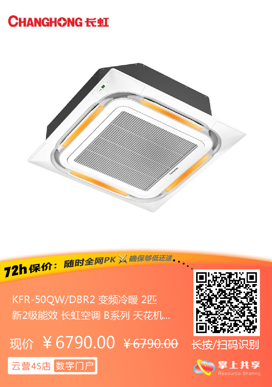 KFR-50QW/DBR2 变频冷暖 2匹 新2级能效 长虹空调 B系列 天花机