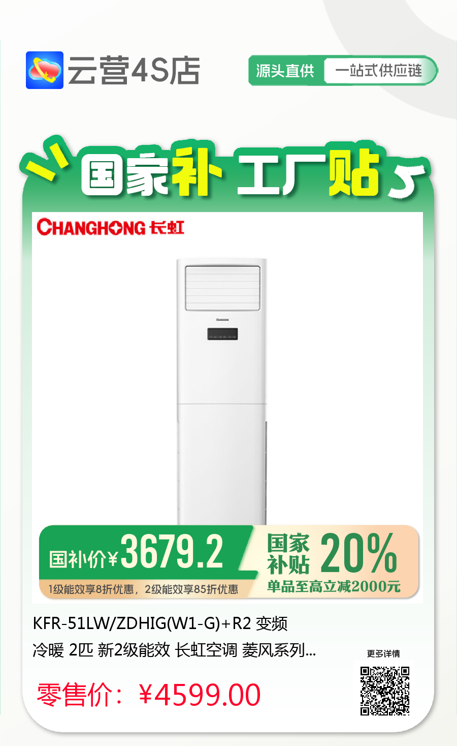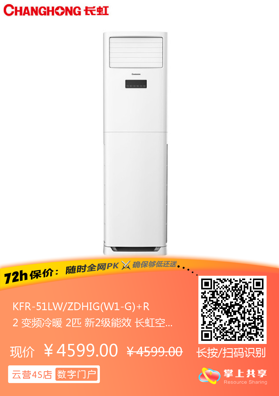 长虹 2匹方柜 HIG 新2级能效 冷暖变频空调 KFR-51LW/ZDHIG(W1-G)+R2