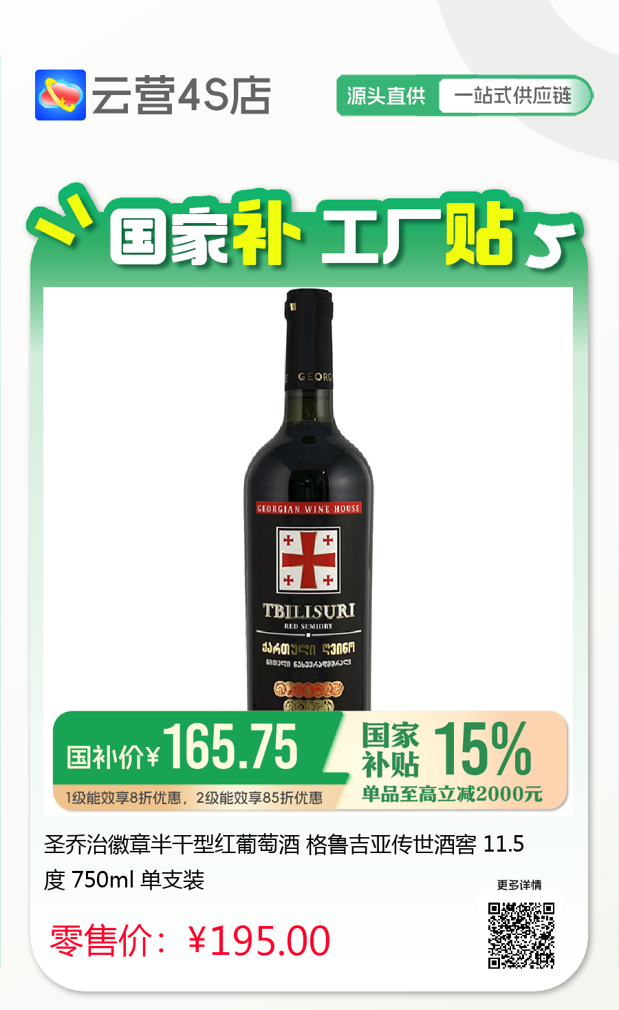 圣乔治徽章半干型红葡萄酒 格鲁吉亚传世酒窖 11.5度 750ml 单支装