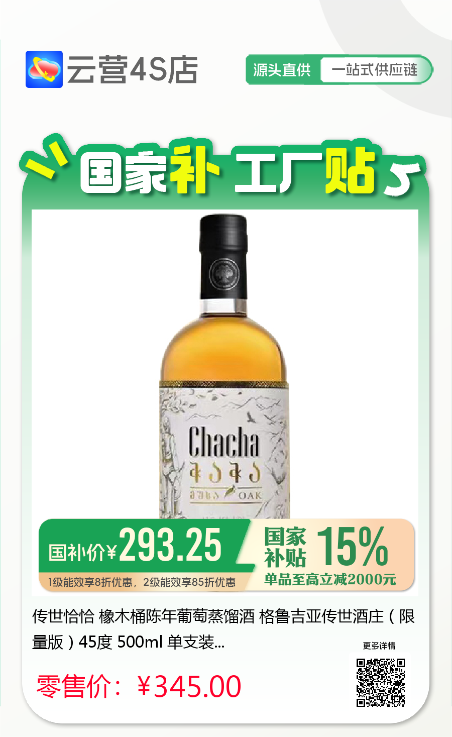 传世恰恰 橡木桶陈年葡萄蒸馏酒 格鲁吉亚传世酒庄(限量版)45度 500ml 单支装