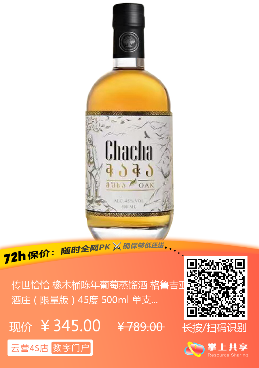 传世恰恰 橡木桶陈年葡萄蒸馏酒 格鲁吉亚传世酒庄(限量版)45度 500ml 单支装