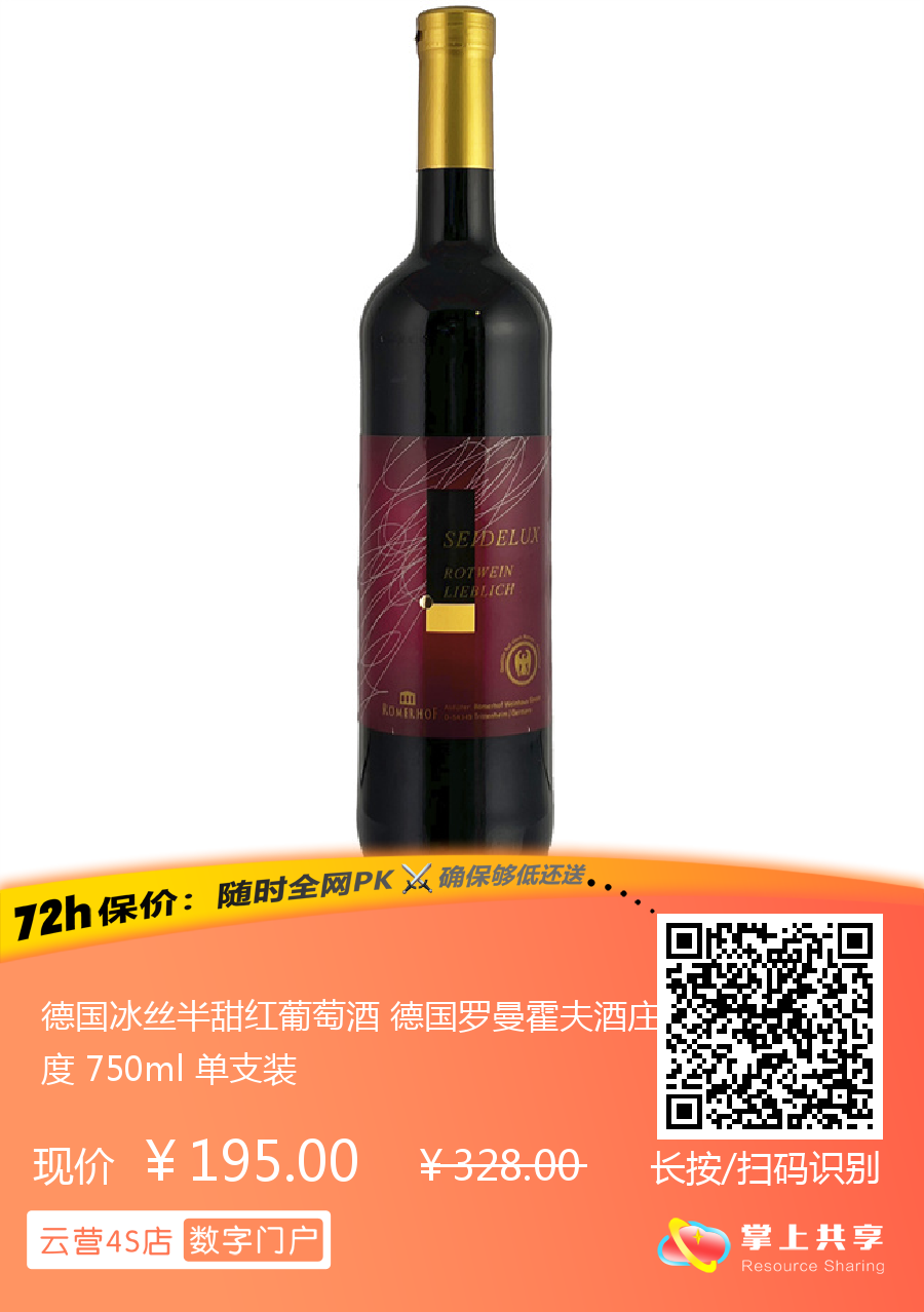 德国冰丝半甜红葡萄酒 德国罗曼霍夫酒庄 10度 750ml 单支装