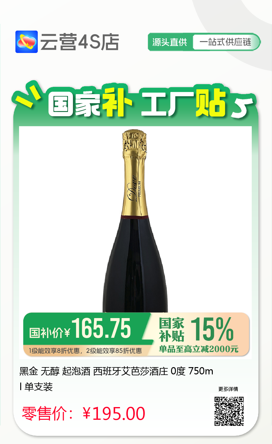 黑金 无醇 起泡酒 西班牙艾芭莎酒庄 0度 750ml 单支装