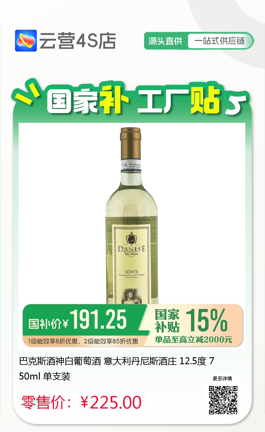 巴克斯酒神白葡萄酒 意大利丹尼斯酒庄 12.5度 750ml 单支装