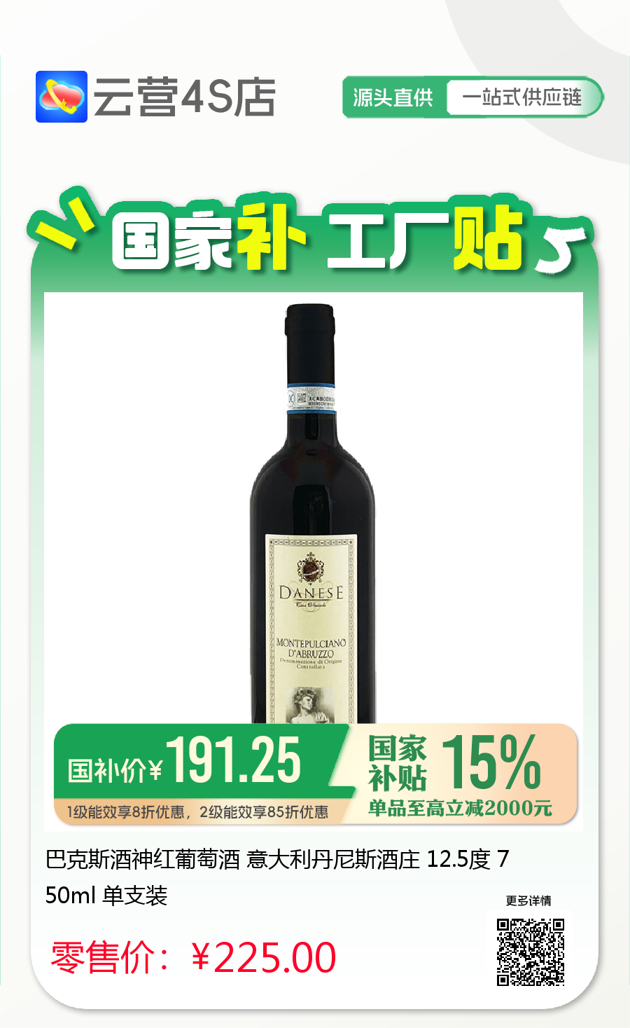 巴克斯酒神红葡萄酒 意大利丹尼斯酒庄 12.5度 750ml 单支装