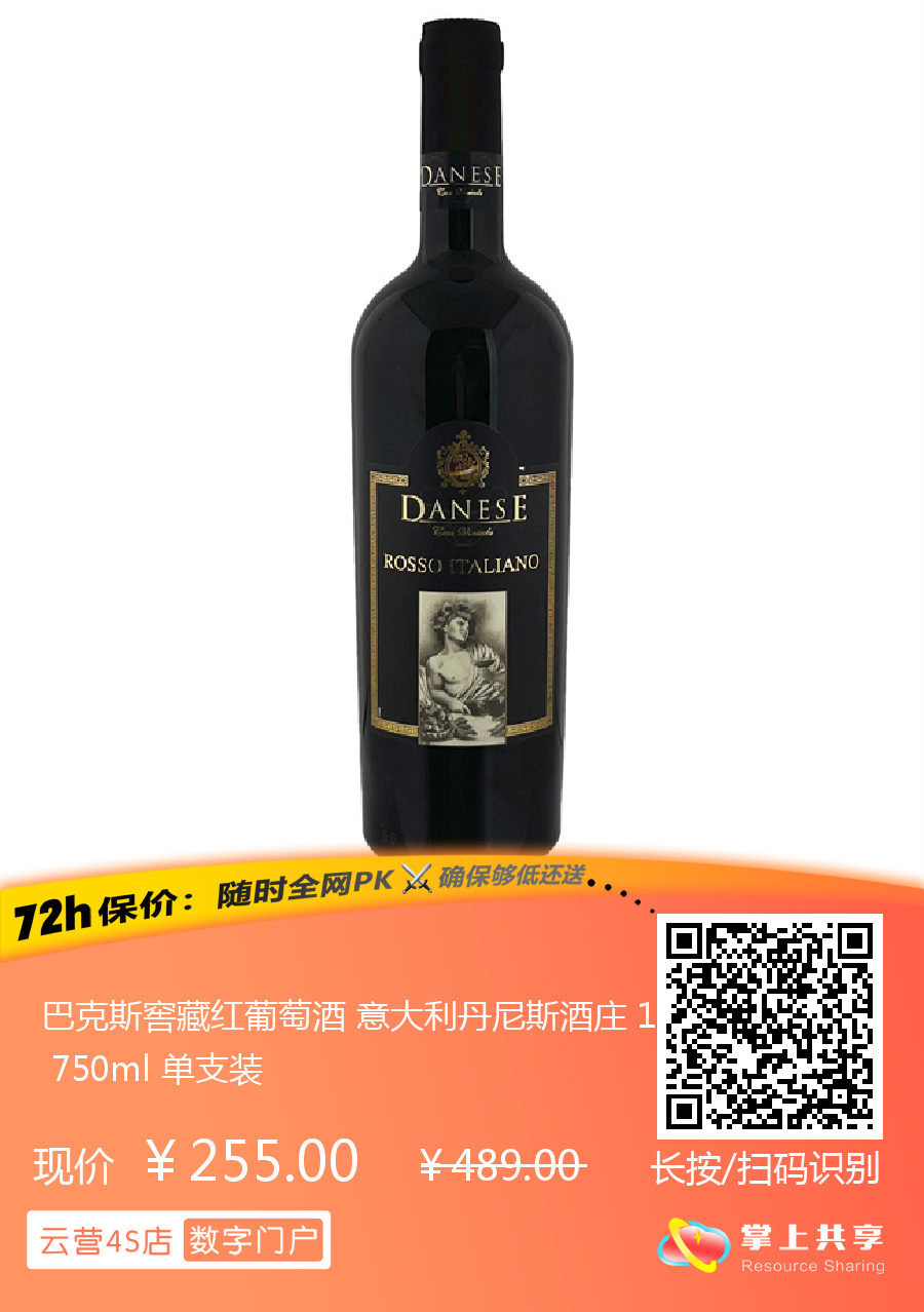 巴克斯窖藏红葡萄酒 意大利丹尼斯酒庄 13度 750ml 单支装