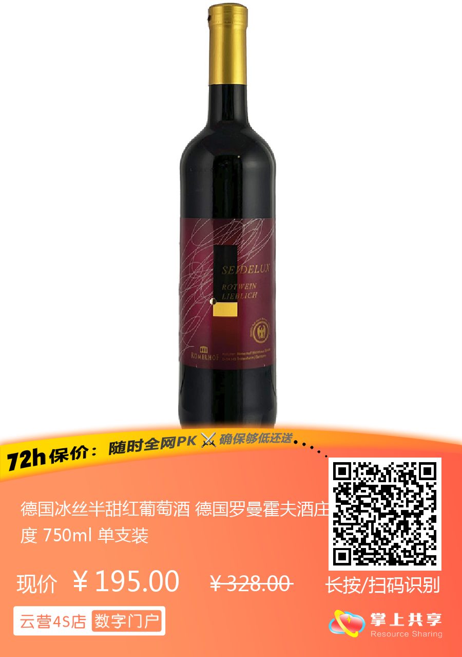德国冰丝半甜红葡萄酒 德国罗曼霍夫酒庄 10度 750ml 单支装