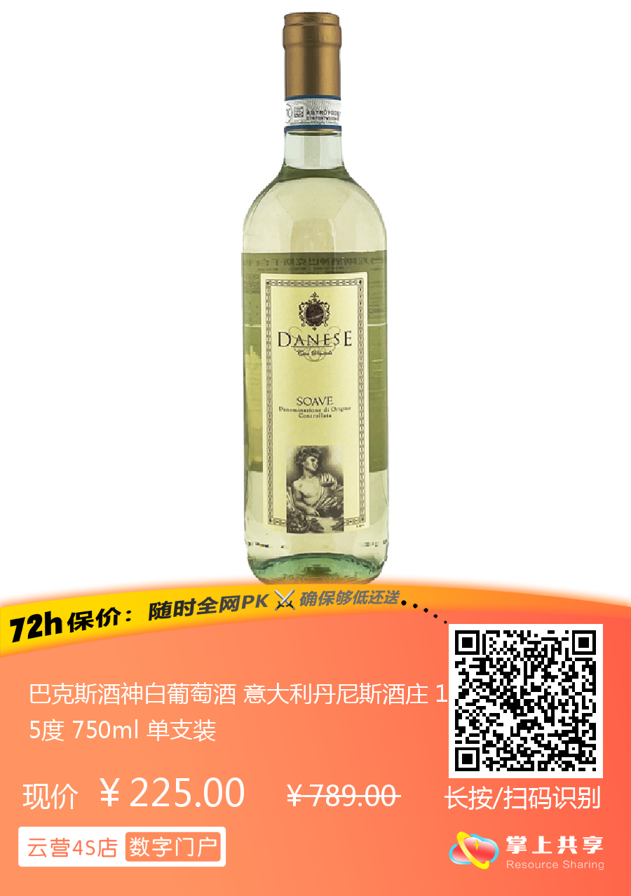 巴克斯酒神白葡萄酒 意大利丹尼斯酒庄 12.5度 750ml 单支装