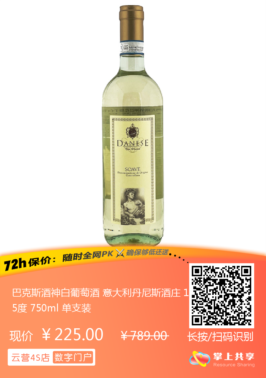 巴克斯酒神白葡萄酒 意大利丹尼斯酒庄 12.5度 750ml 单支装