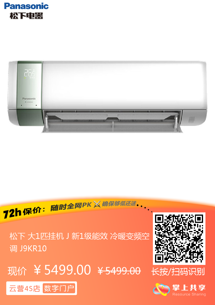 松下 大1匹挂机 J 新1级能效 冷暖变频空调 J9KR10