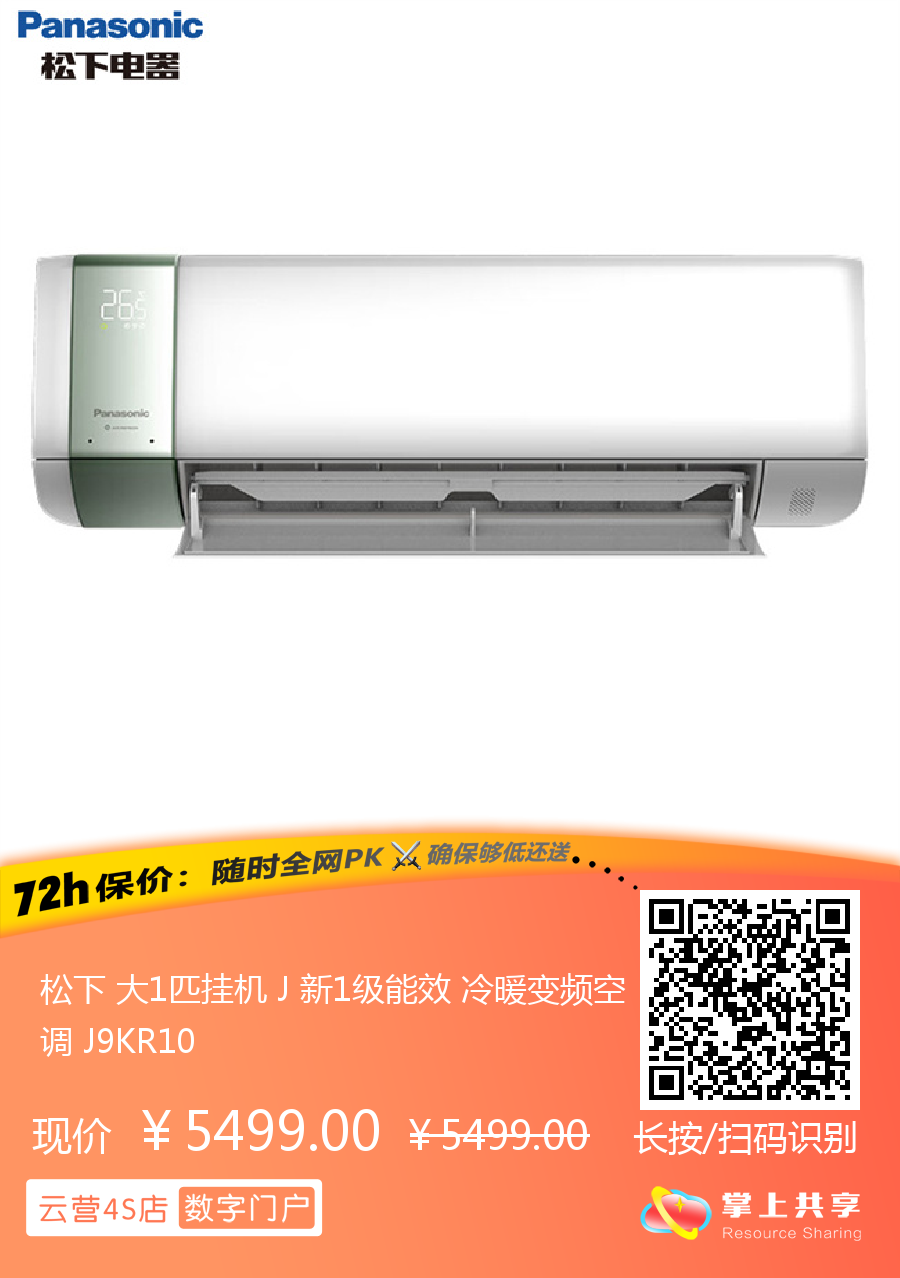 松下 大1匹挂机 J 新1级能效 冷暖变频空调 J9KR10