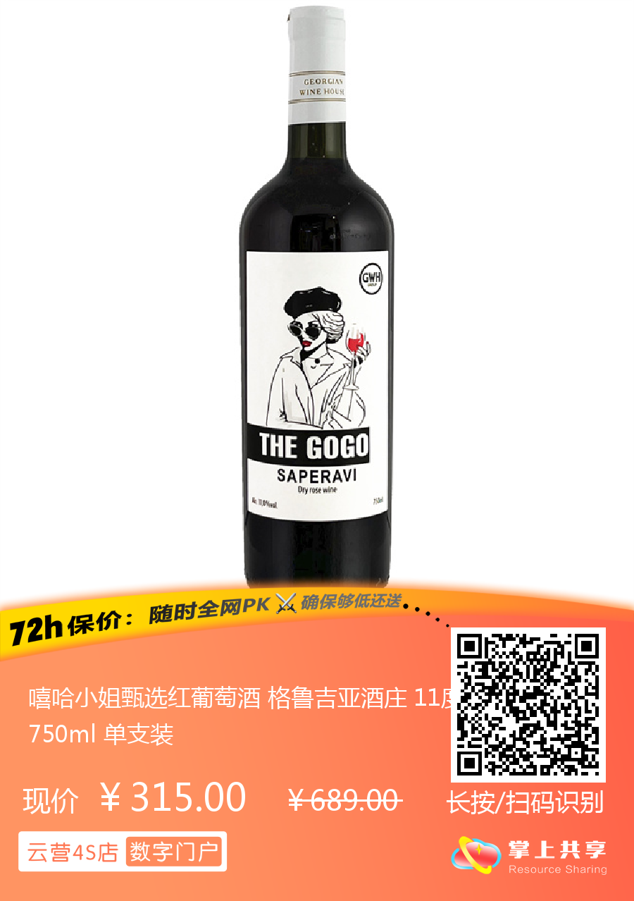 嘻哈小姐甄选红葡萄酒 格鲁吉亚酒庄 11度 750ml 单支装
