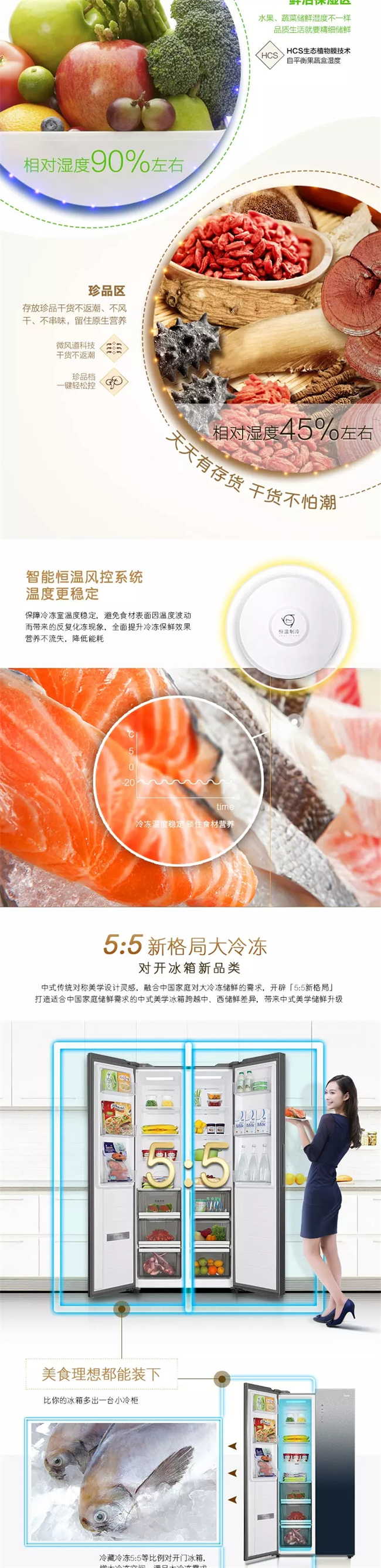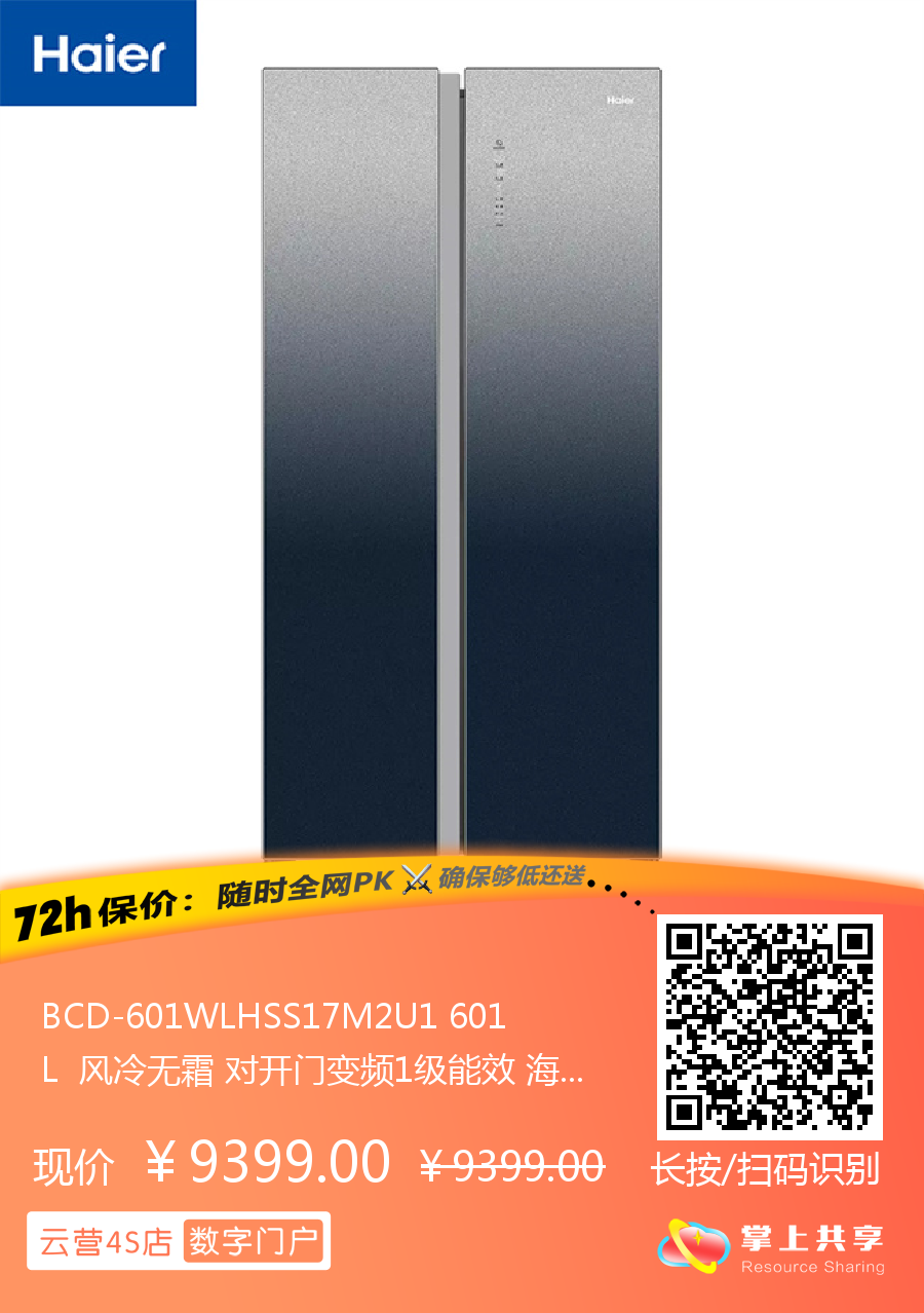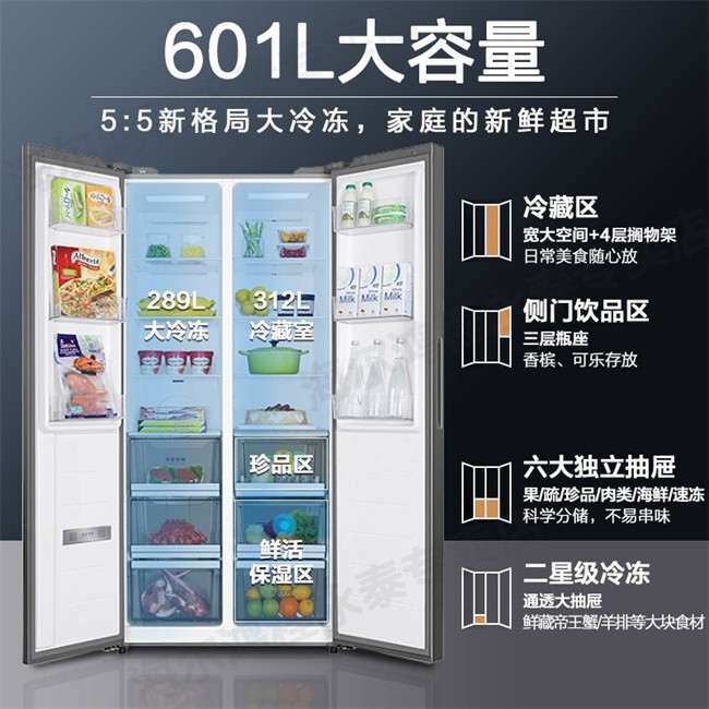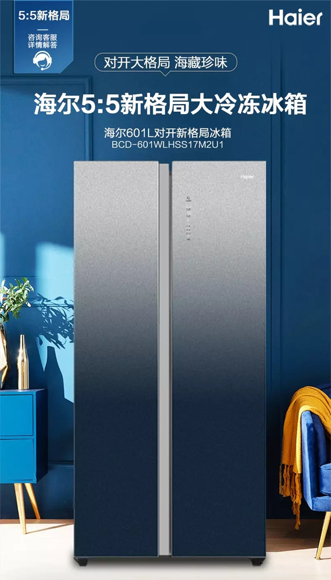 BCD-601WLHSS17M2U1 601L 风冷无霜 对开门变频1级能效 海尔(Haier)