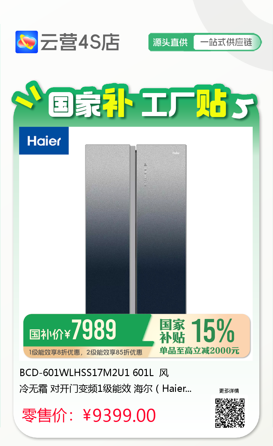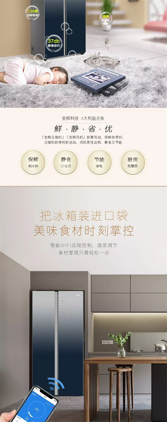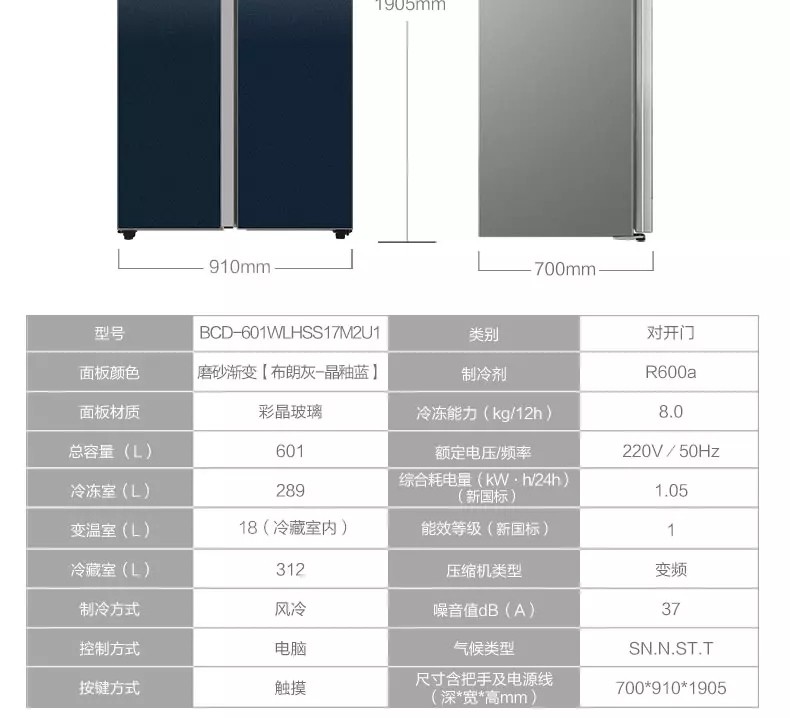 BCD-601WLHSS17M2U1 601L 风冷无霜 对开门变频1级能效 海尔(Haier)