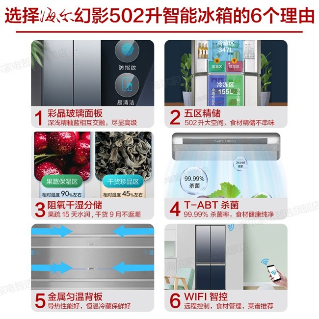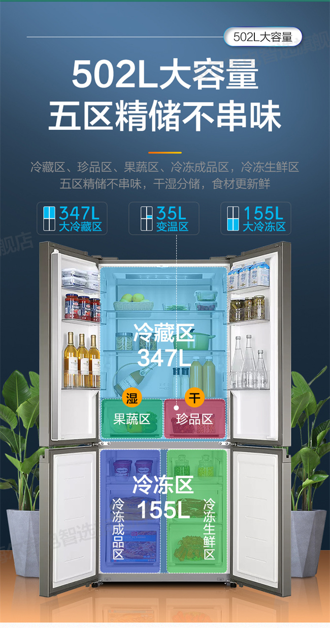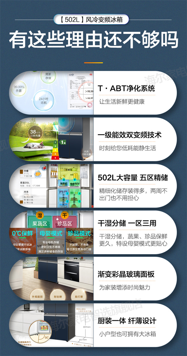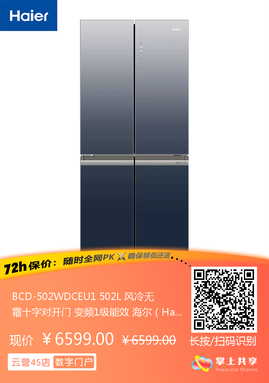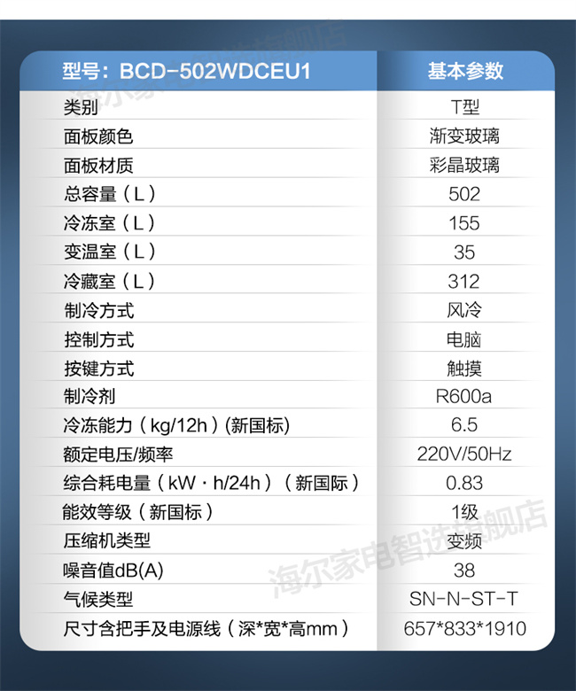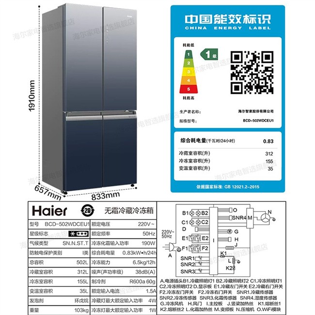 BCD-502WDCEU1 502L 风冷无霜十字对开门 变频1级能效 海尔(Haier)