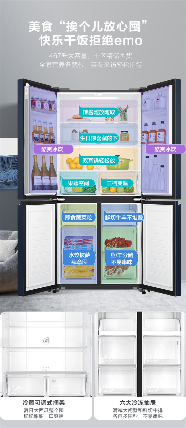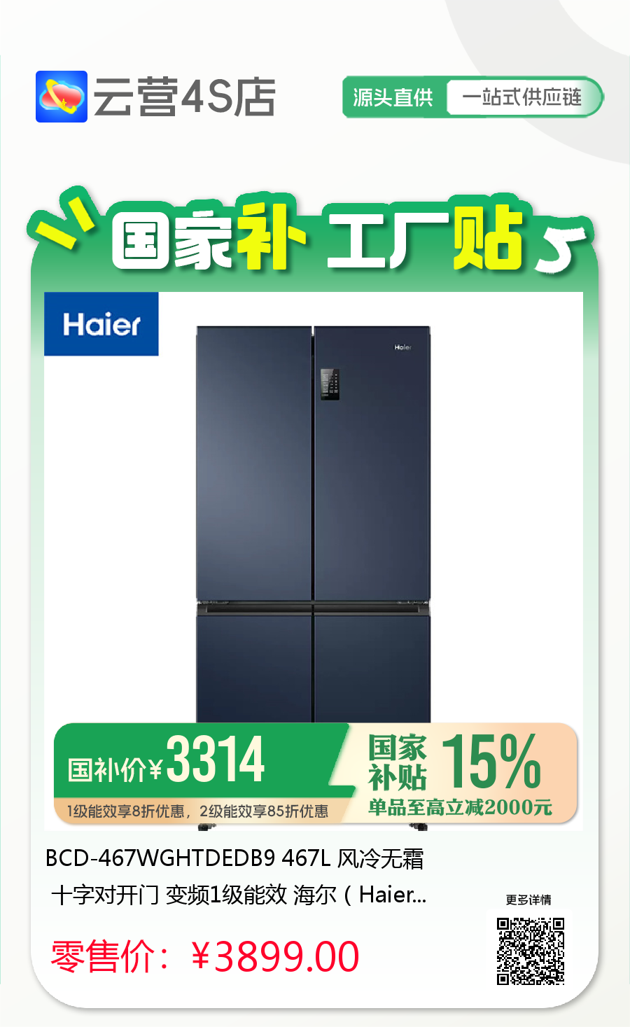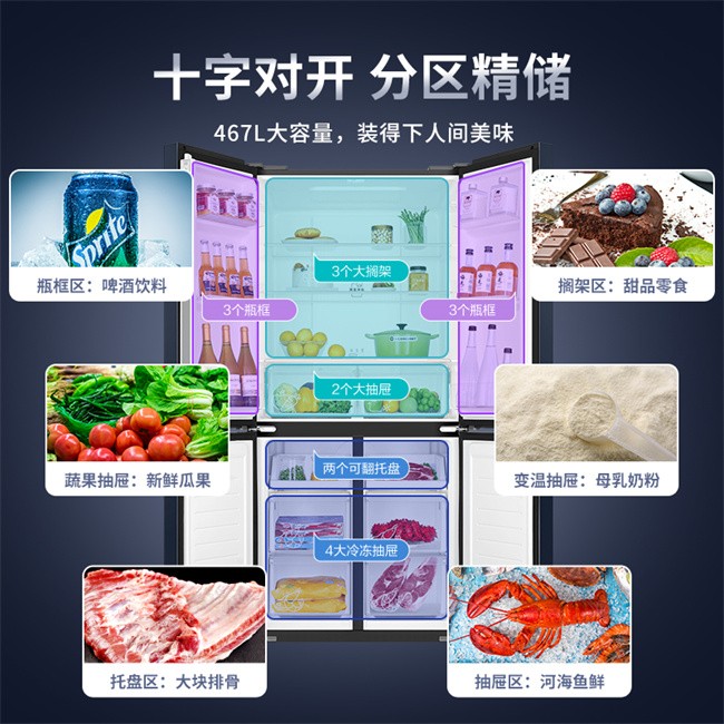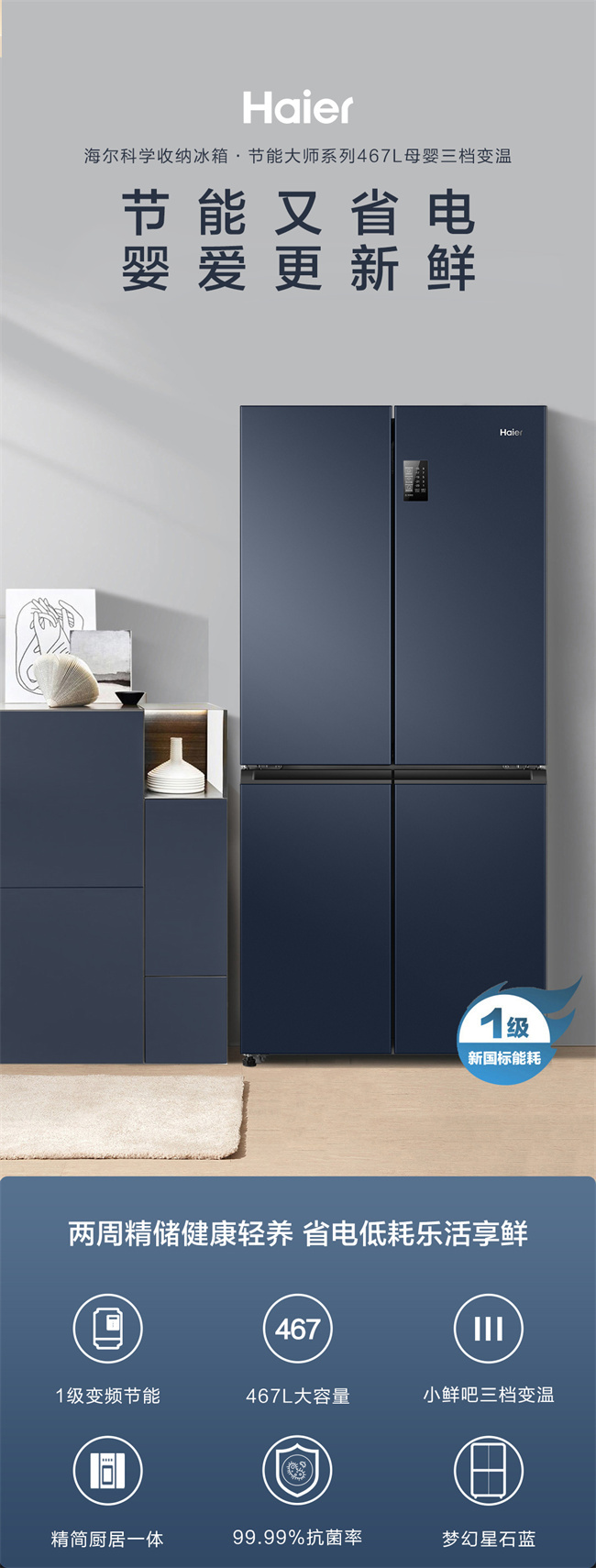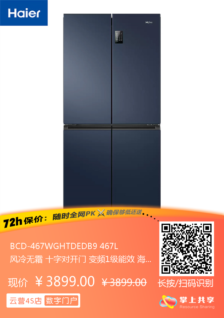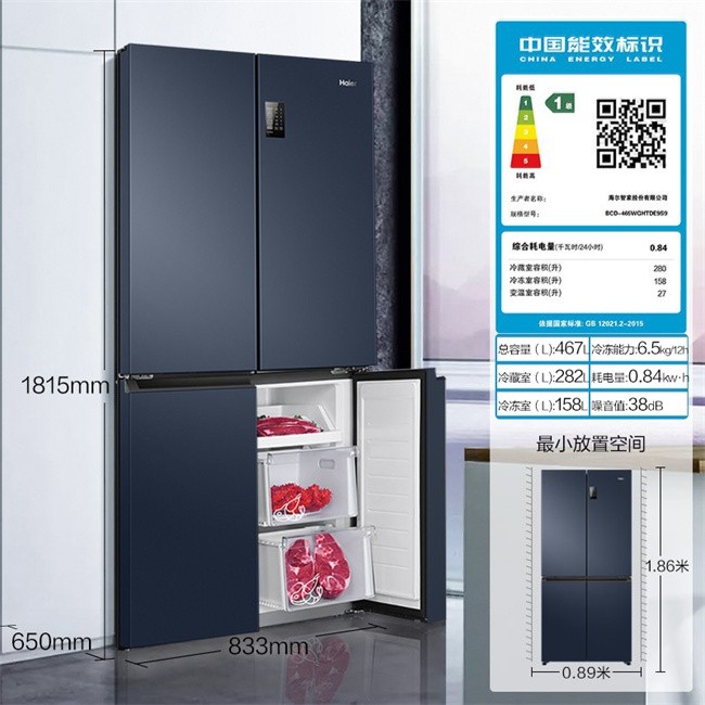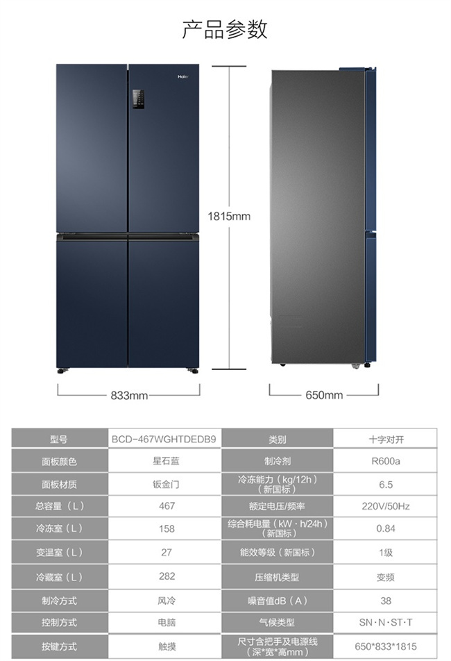 BCD-467WGHTDEDB9 467L 风冷无霜 十字对开门 变频1级能效 海尔(Haier)