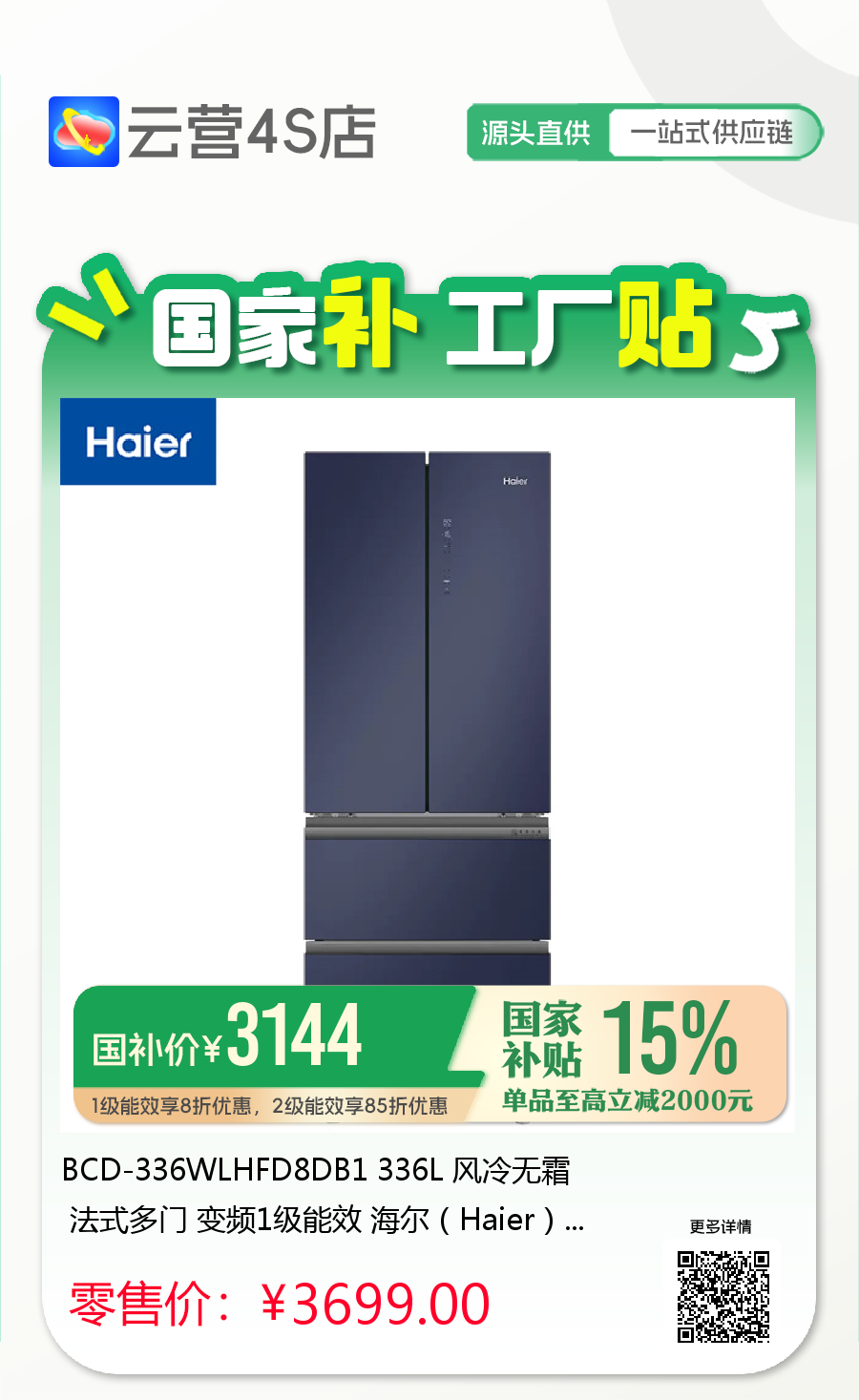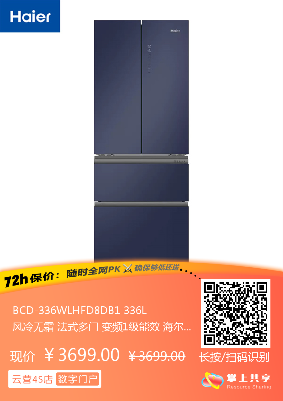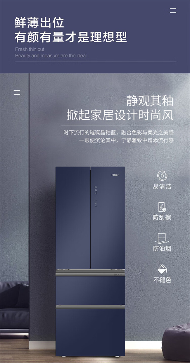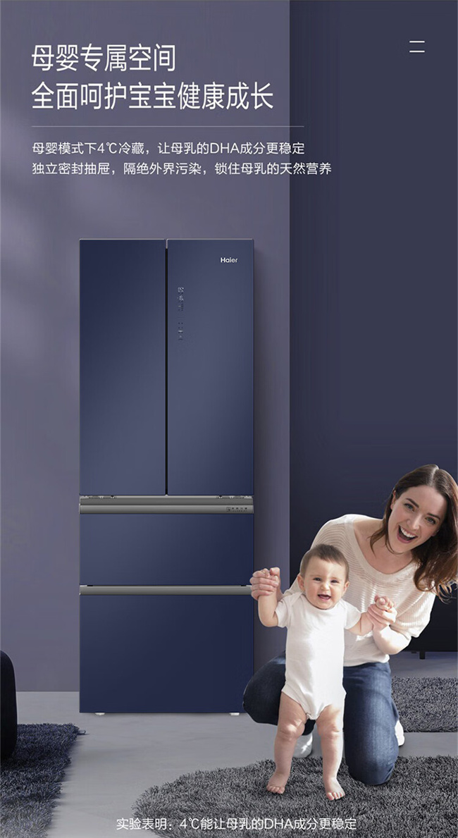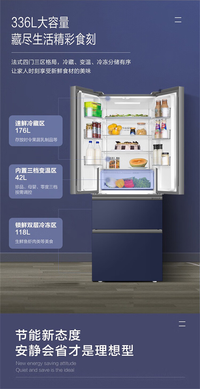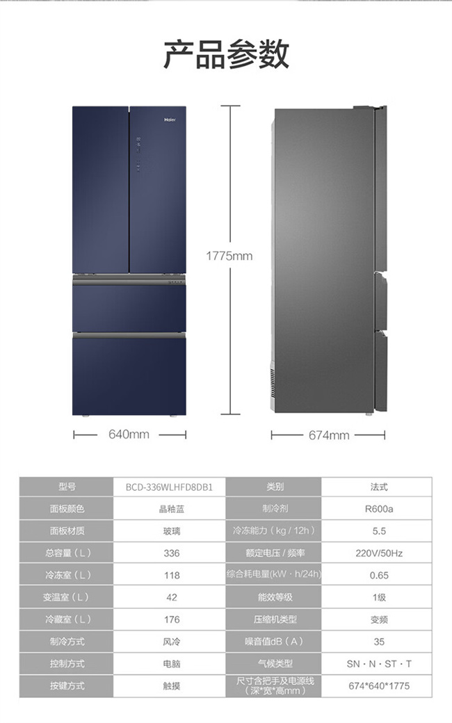 BCD-336WLHFD8DB1 336L 风冷无霜 法式多门 变频1级能效 海尔(Haier)