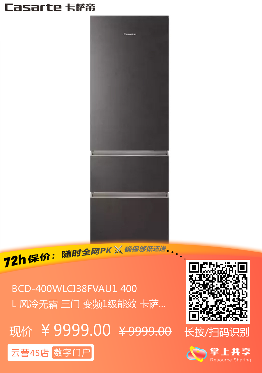 BCD-400WLCI38FVAU1 400L 风冷无霜 三门 变频1级能效 卡萨帝(Casarte)