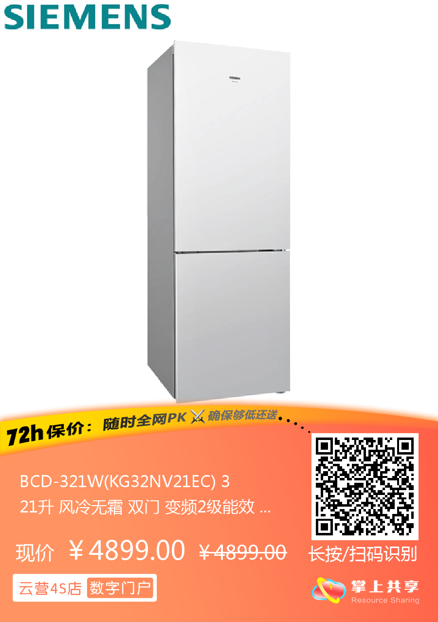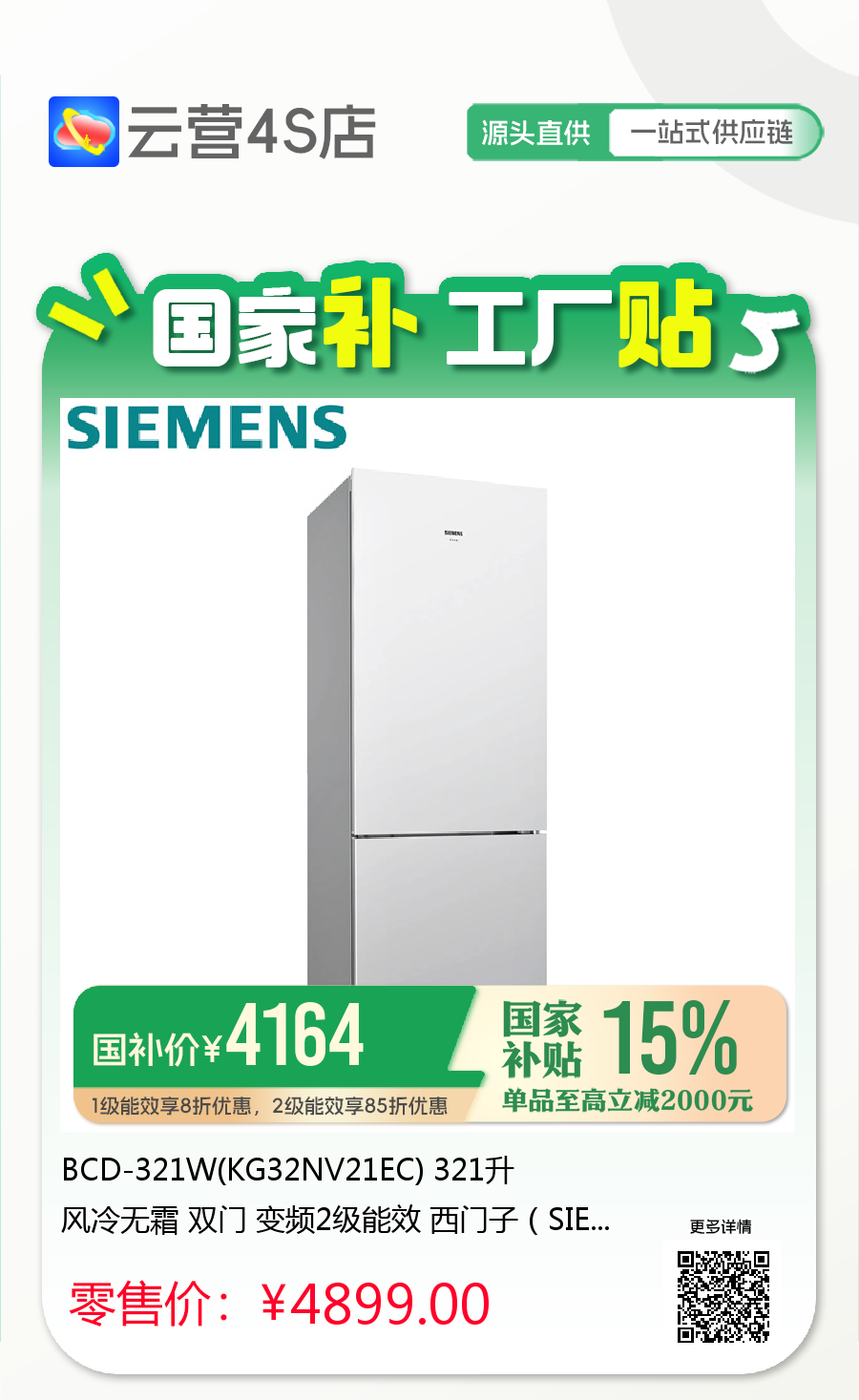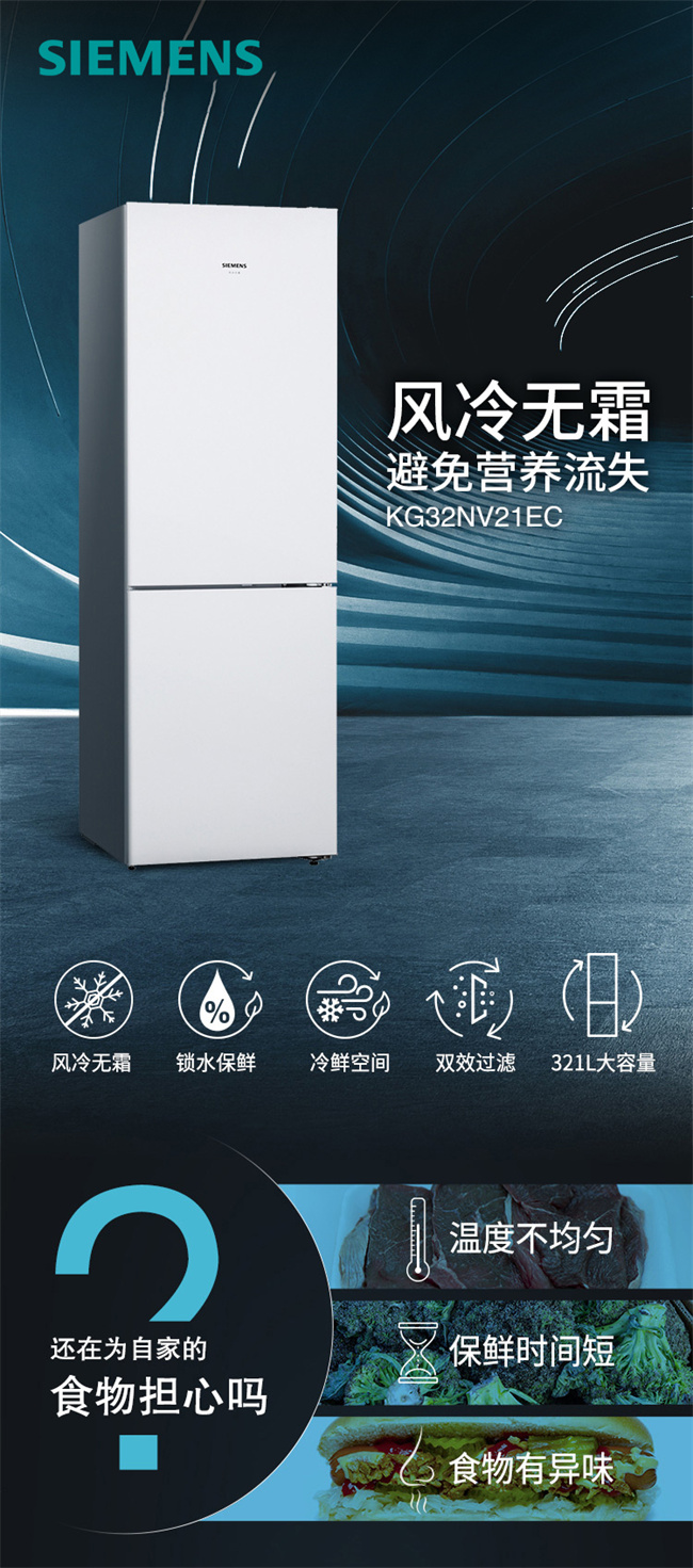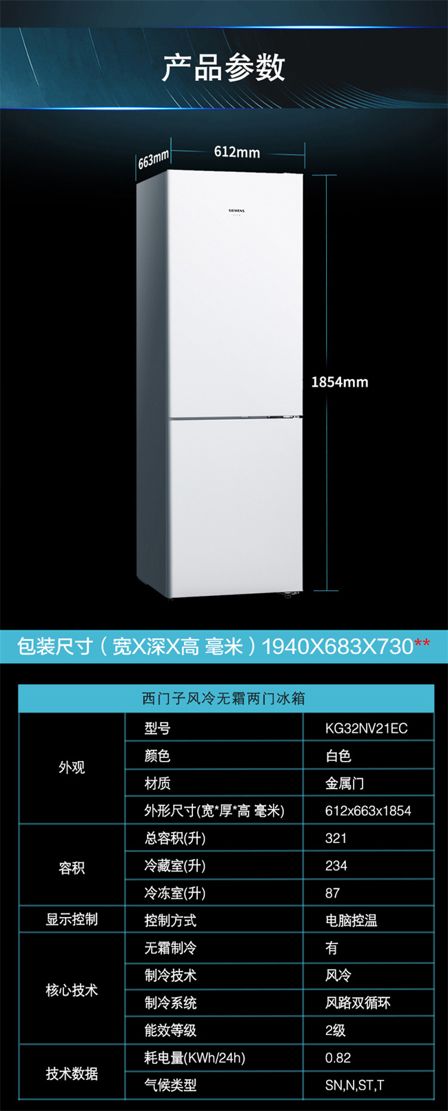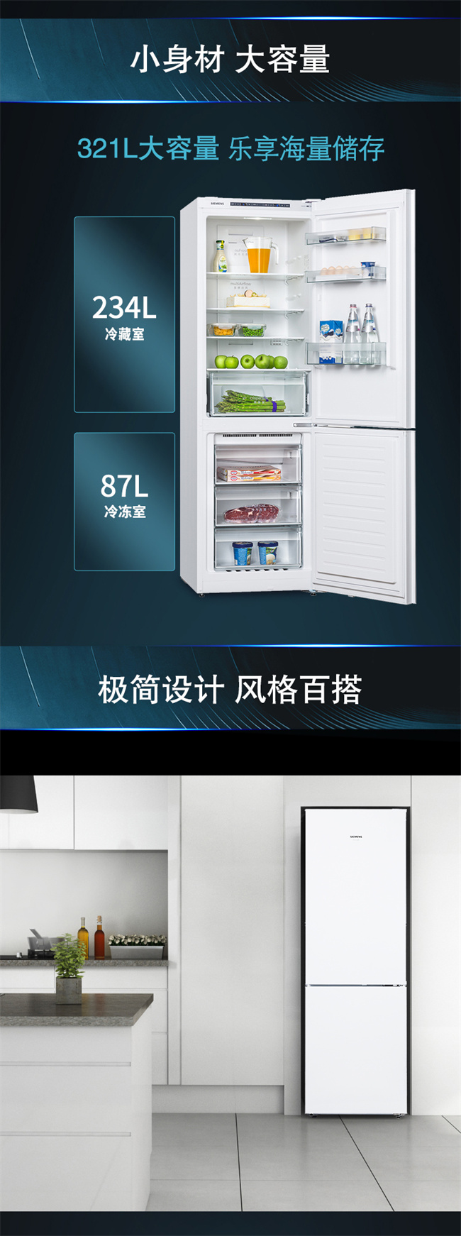 BCD-321W(KG32NV21EC) 321升 风冷无霜 双门 变频2级能效 西门子(SIEMENS)