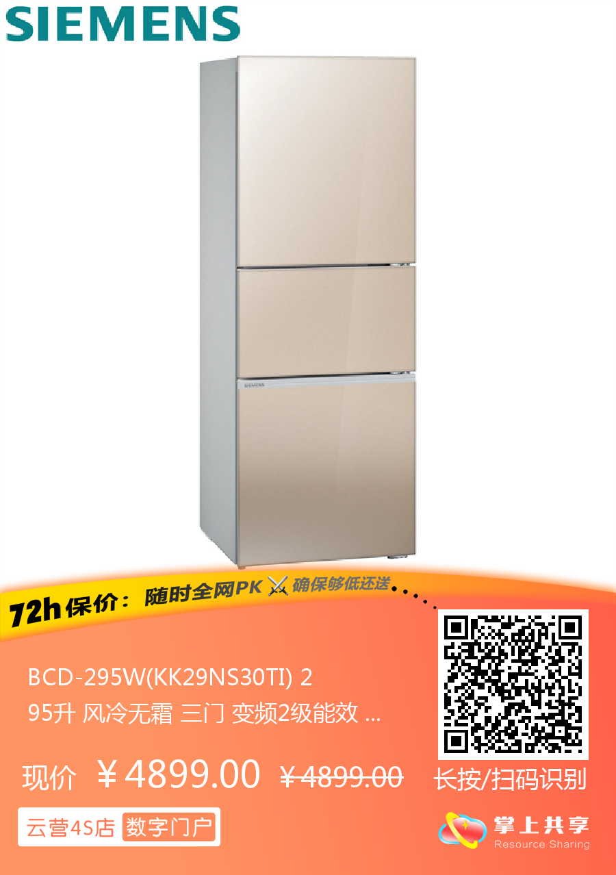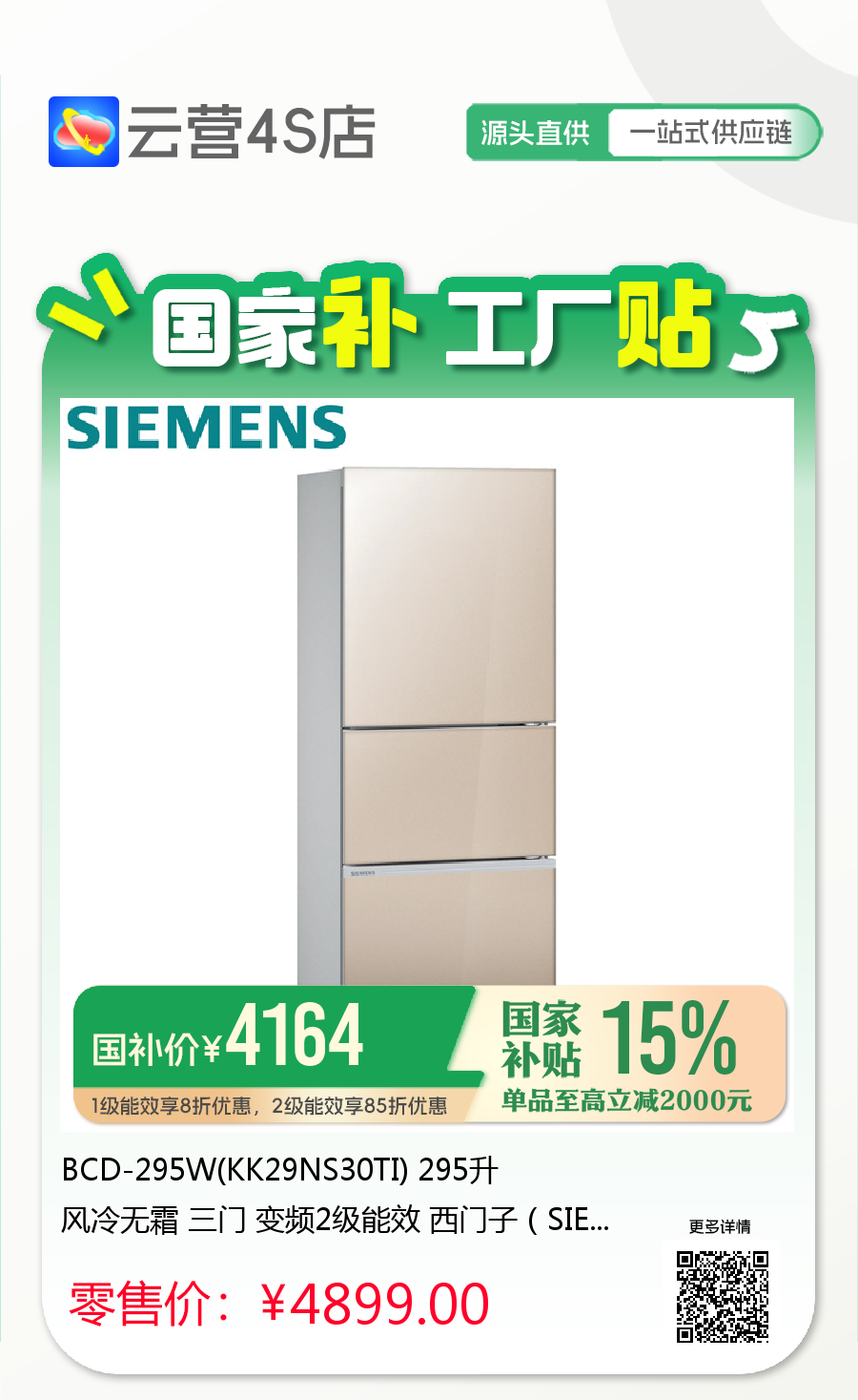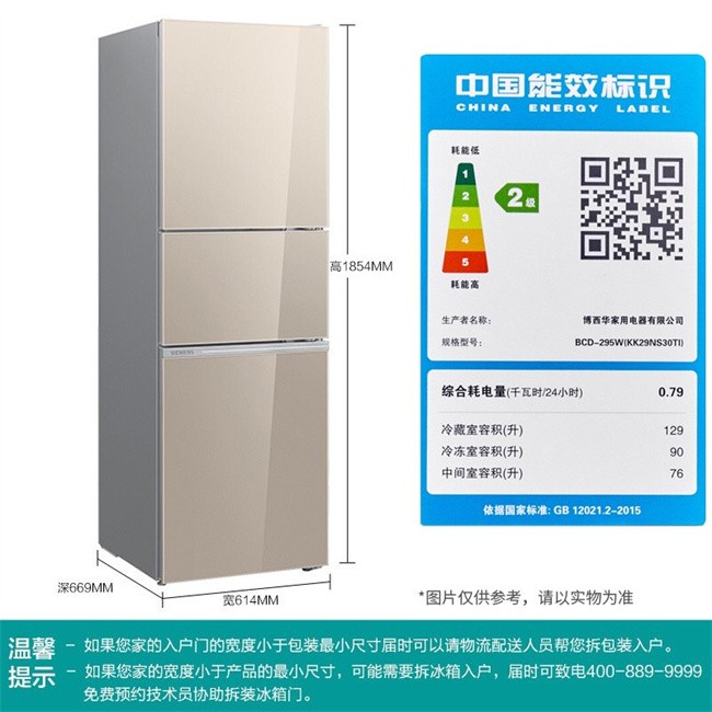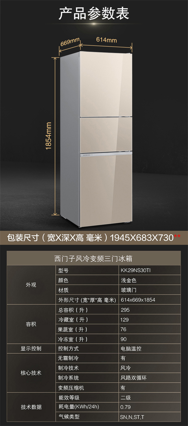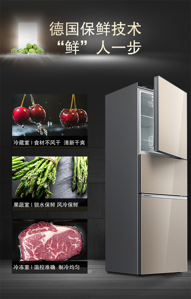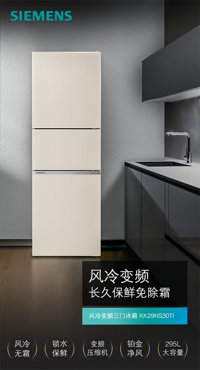 BCD-295W(KK29NS30TI) 295升 风冷无霜 三门 变频2级能效 西门子(SIEMENS)