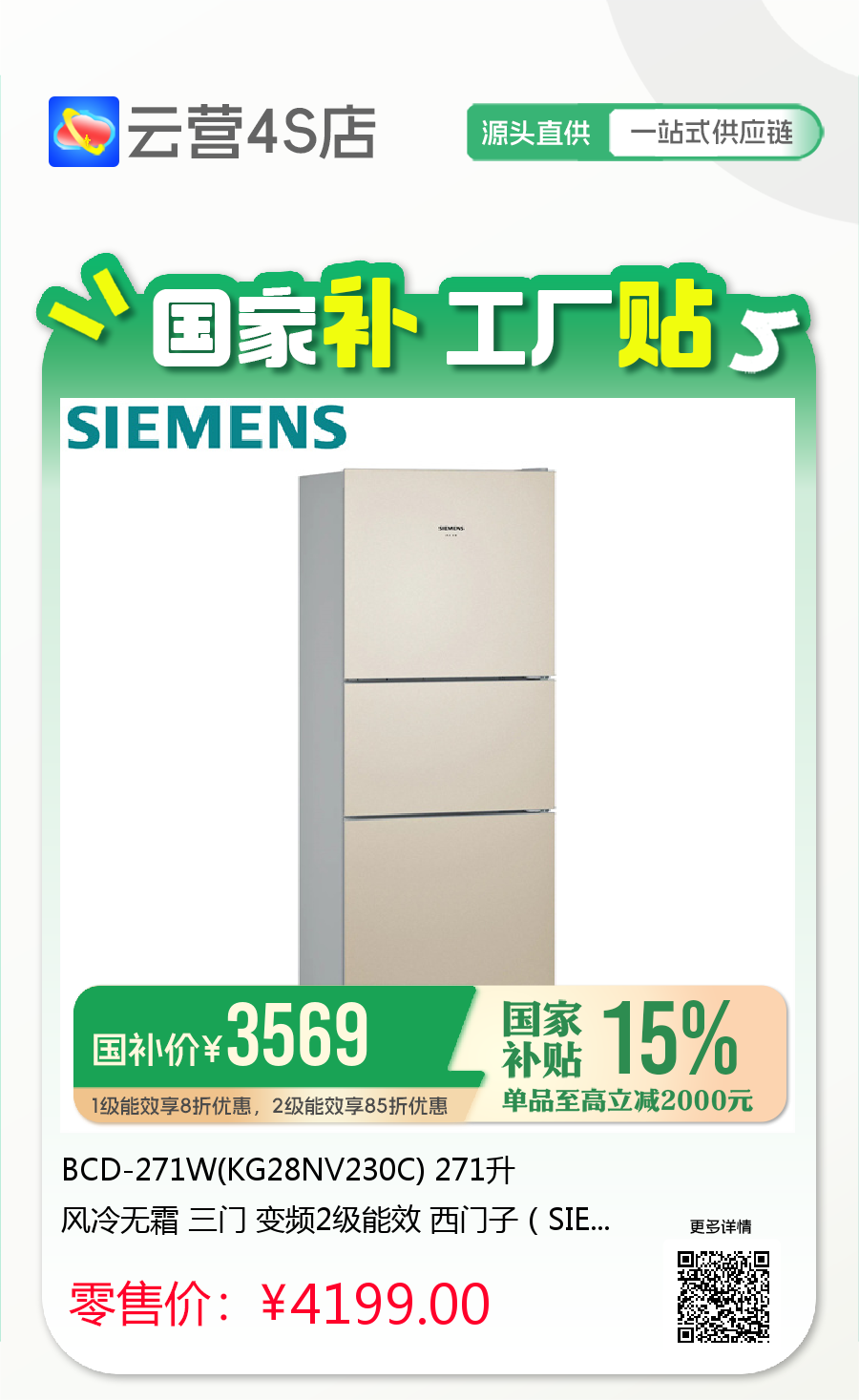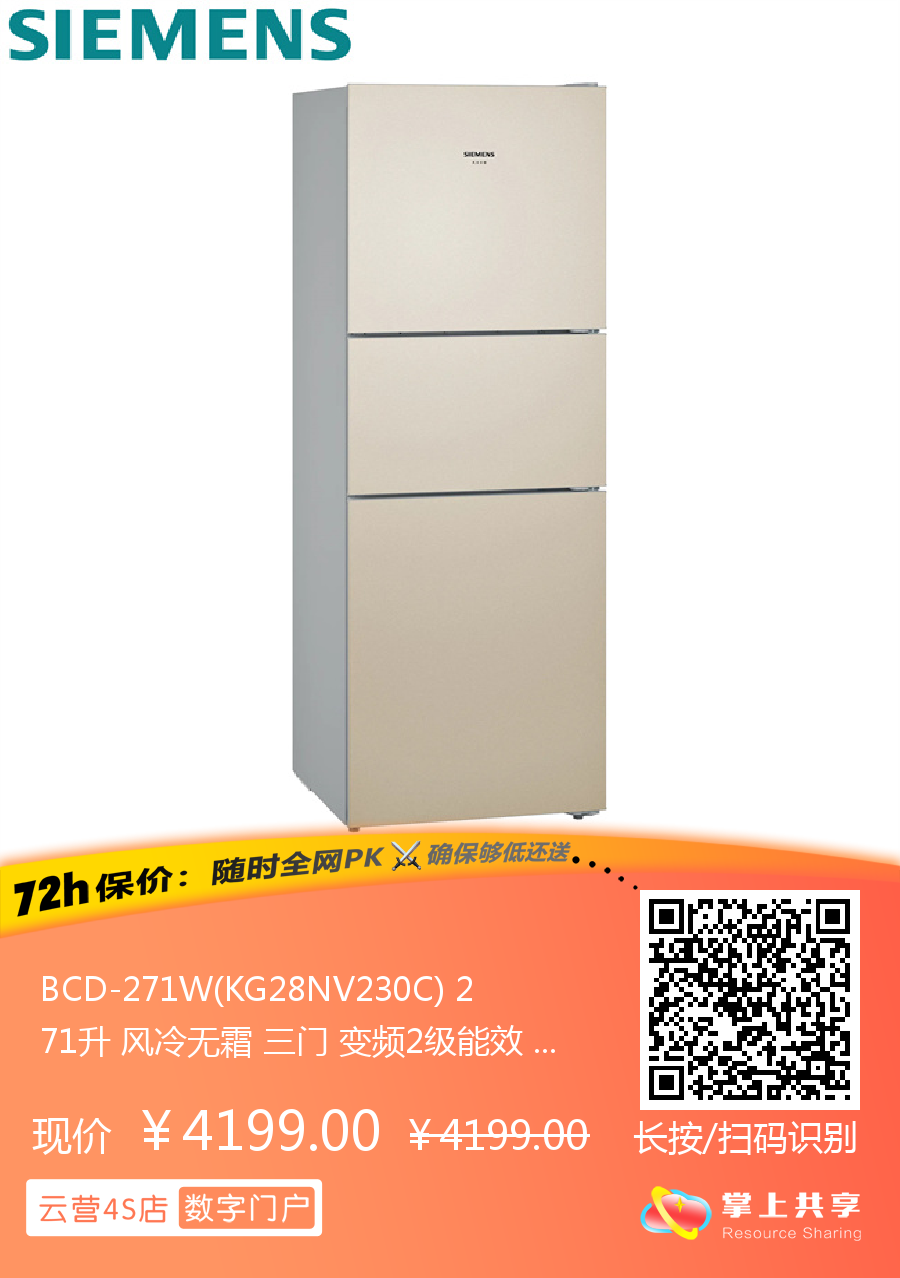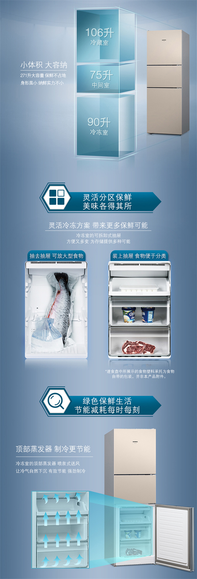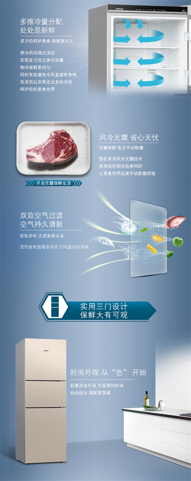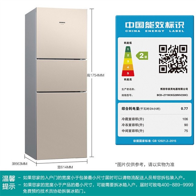 BCD-271W(KG28NV230C) 271升 风冷无霜 三门 变频2级能效 西门子(SIEMENS)