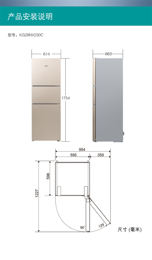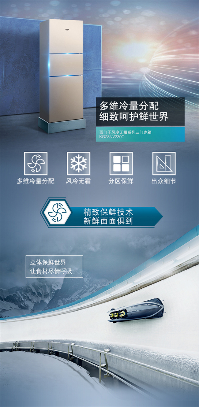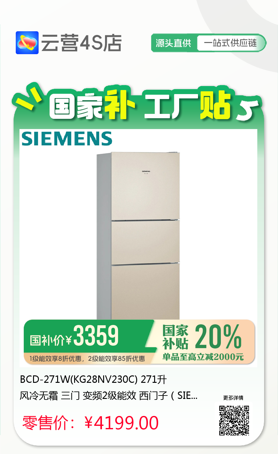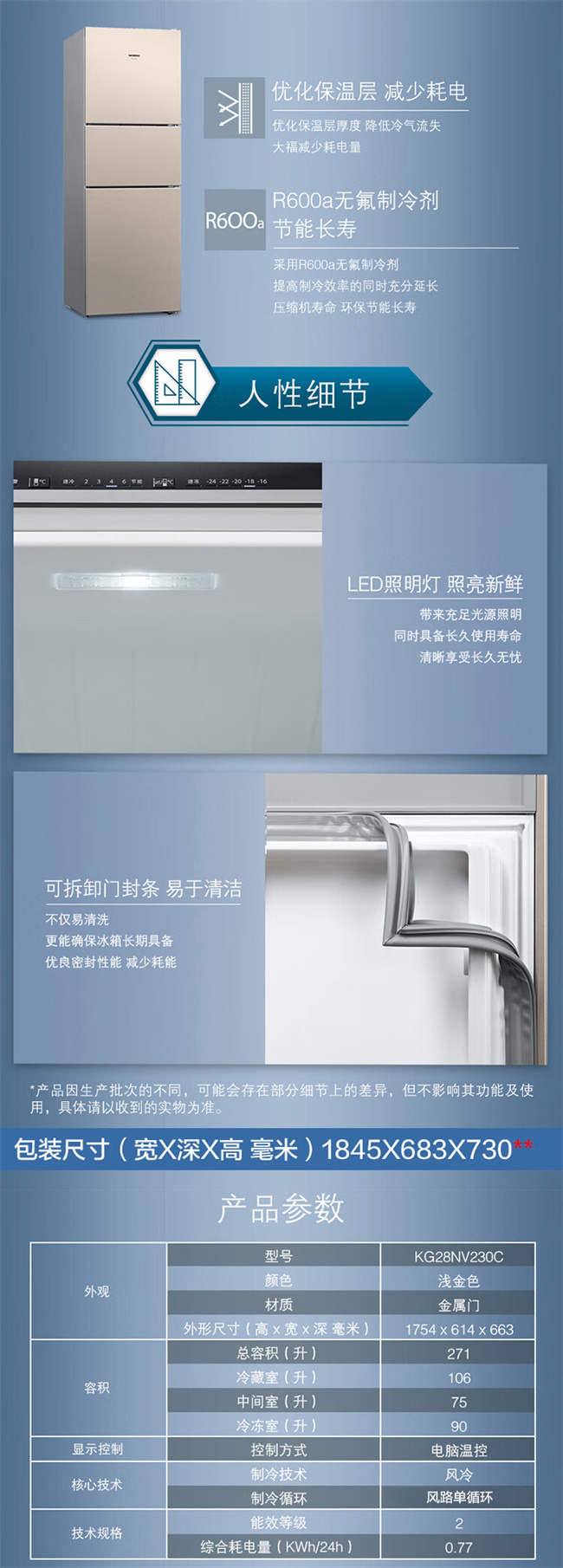 BCD-271W(KG28NV230C) 271升 风冷无霜 三门 变频2级能效 西门子(SIEMENS)